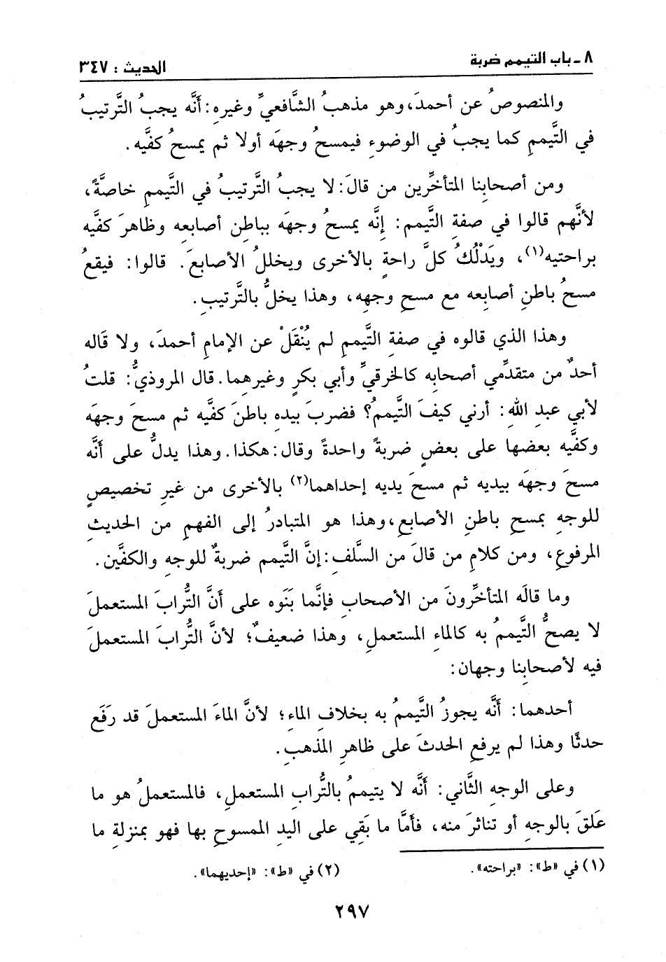وهذا الذي قالوه في صفة التيمم لم ينقل عن الإمام أحمد، ولا قاله أحد من متقدمي أصحابه كالخرقي وأبي بكر وغيرهما.