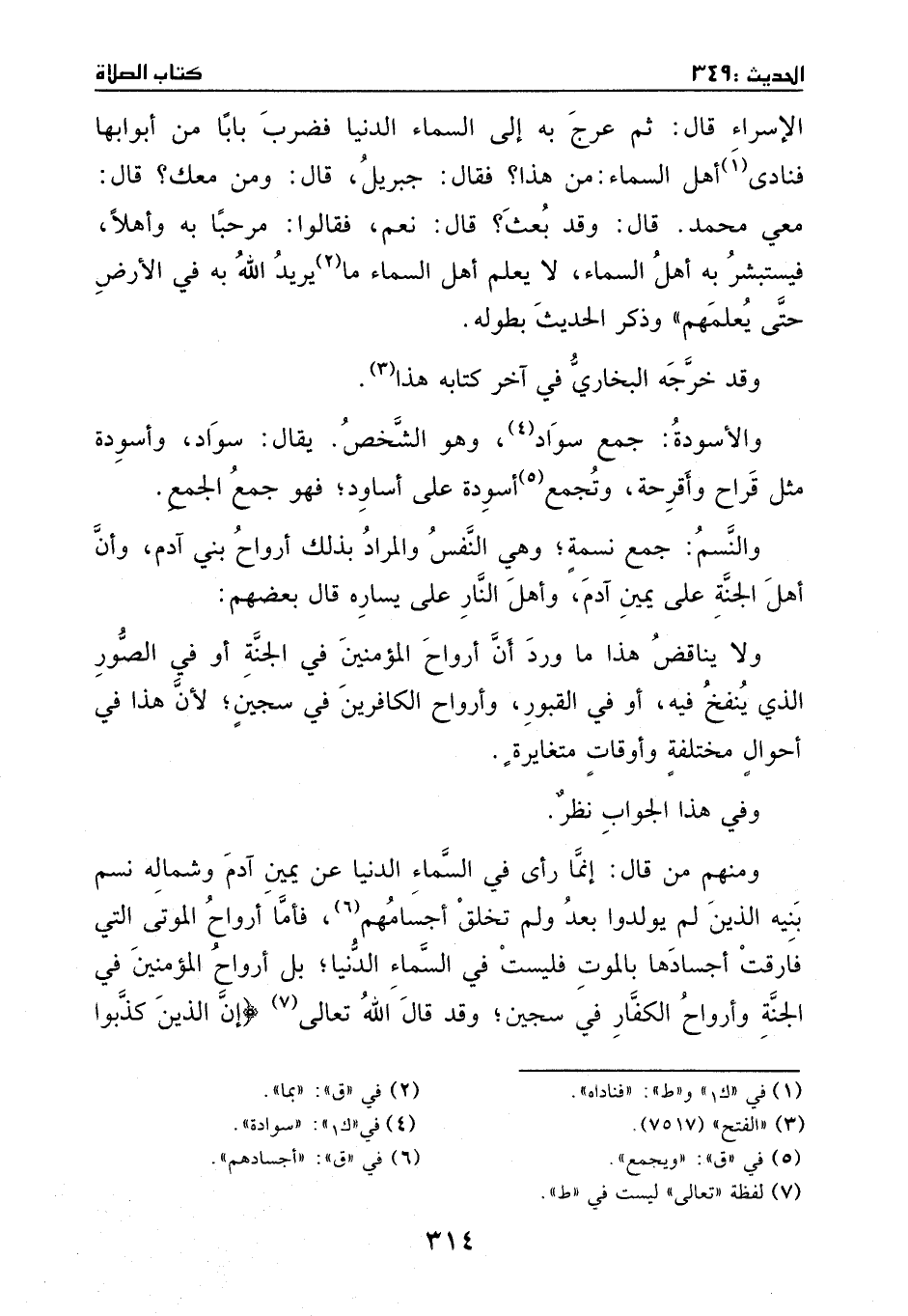 ((والأسودة)) : جمع سواد، وهو الشخص، يقال: سواد وأسودة، مثل قراح وأقرحة، وتجمع: أسودة على أساود، فهو جمع الجمع. ((والنسم)) : جمع نسمة، وهي النفس.