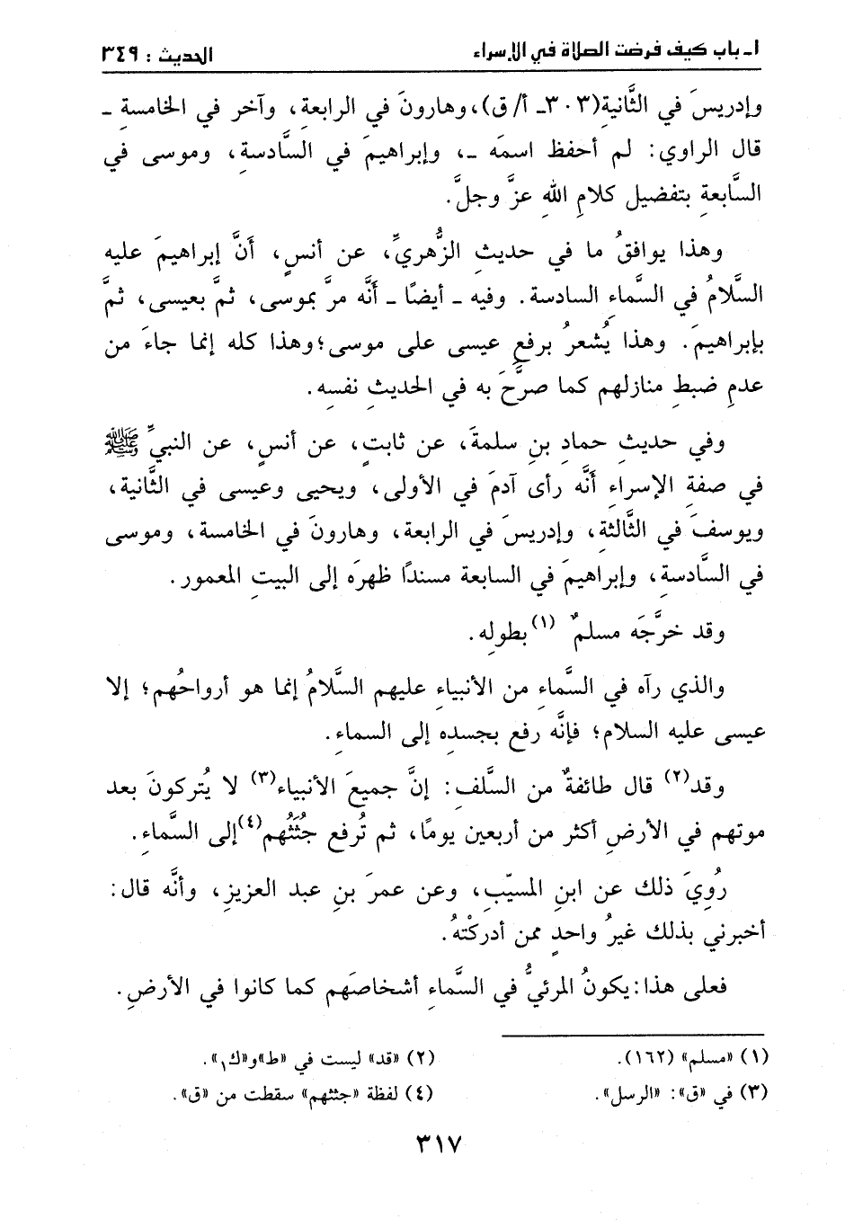 والذي رآه في السماء من الأنبياء عليهم السلام إنما هو أرواحهم، إلا عيسى - عليه السلام - فإنه رفع بجسده إلى السماء.
