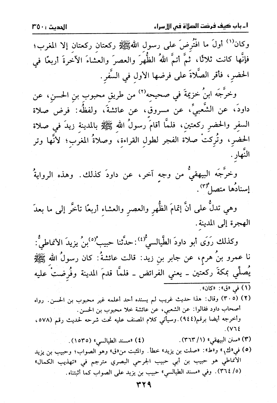 وكذلك روى أبو داود الطيالسي: ثنا حبيب بن يزيد الانماطي: ثنا عمرو ابن هرم، عن جابر بن زيد، قال: قالت عائشة: كان رسول الله - صَلَّى اللهُ عَلَيْهِ وَسَلَّمَ - يصلي بمكة ركعتين - تعني: الفرائض -، فلما قدم إلى المدينة وفرضت عليه