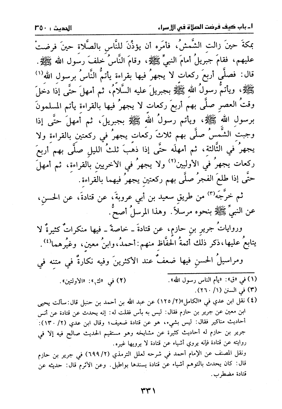 وهذا المرسل اصح، وروايات جرير بن حازم عن قتادة خاصة فيها منكرات كثيرة، لا يتابع عليها، ذكر ذلك أئمة الحفاظ: منهم أحمد وابن معين وغيروهما. ومراسيل الحسن. فيها ضعف عند الاكثرين، وفيه نكارة في متنه في