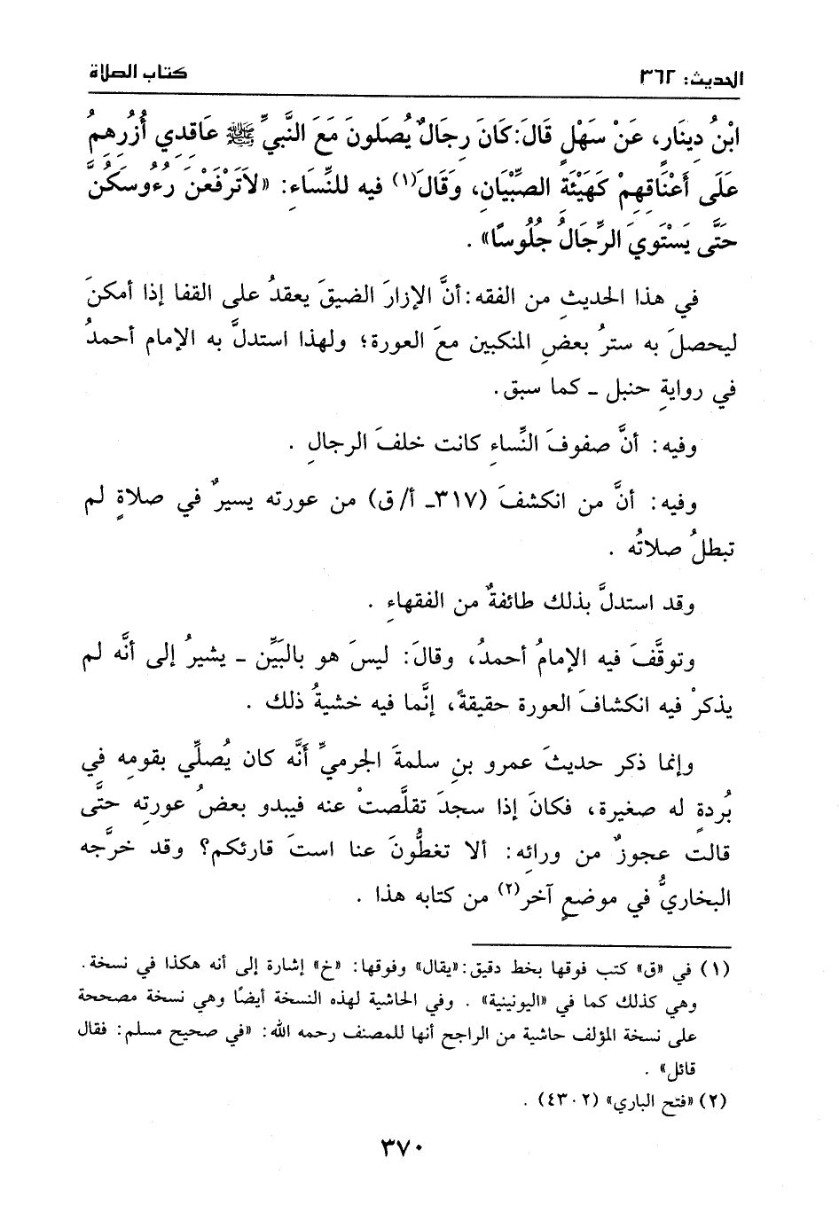 يشير إلى أنه لم يذكر فيه انكشاف العورة حقيقة، إنما فيه خشية ذلك؛ وإنما ذكر حديث عمرو بن سلمة الجرمي أنه كان يصلي بقومه في بردة له صغيرة فكان إذا سجد تقلصت عنه فيبدو بعض عورته حتى قالت عجوز من ورائه: ألا تغطون عنا است قارئكم.