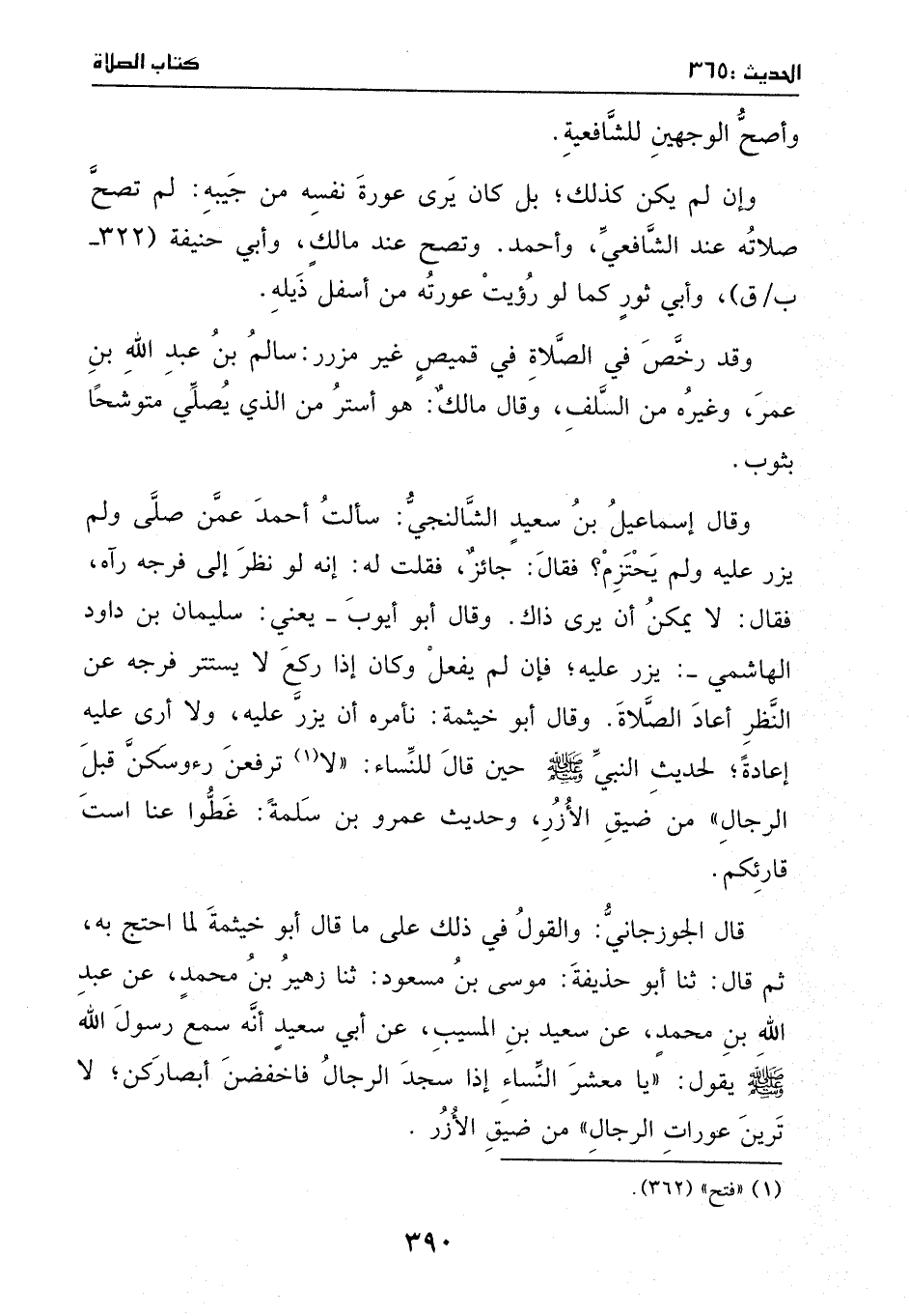 قال الجوزاني: والقول في ذلك على ما قاله أبو خيثمة لما احتج به، ثم قال: ثنا أبو حذيفة موسى بن مسعود: ثنا زهير بن محمد، عن عبد الله بن محمد، عن سعيد بن المسيب، عن أبي سعيد، أنه سمع رسول الله - صَلَّى اللهُ عَلَيْهِ وَسَلَّمَ - يقول: ((يا معشر النساء، إذا سجد الرجال فاخفضن أبصاركن، لا ترين عورات الرجال)) من ضيق الأزر.