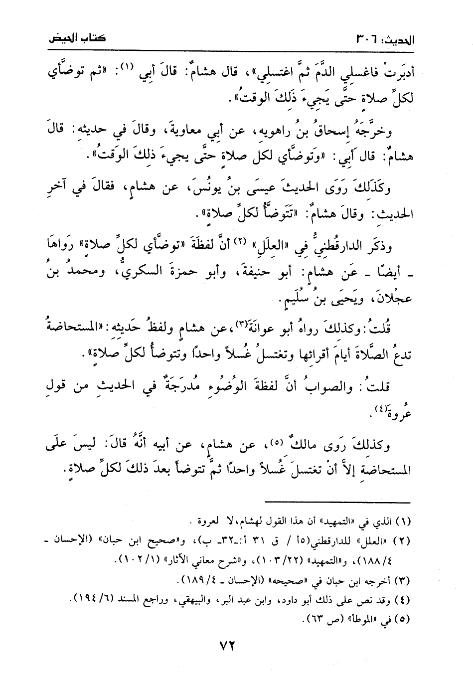 قلت: وكذلك رواه أبو عوانة، عَن هشام، ولفظ حديثه: ((المستحاضة تدع الصلاة أيام أقرائها، وتغتسل غسلاً واحداً، وتتوضأ لكل صلاة)) .
