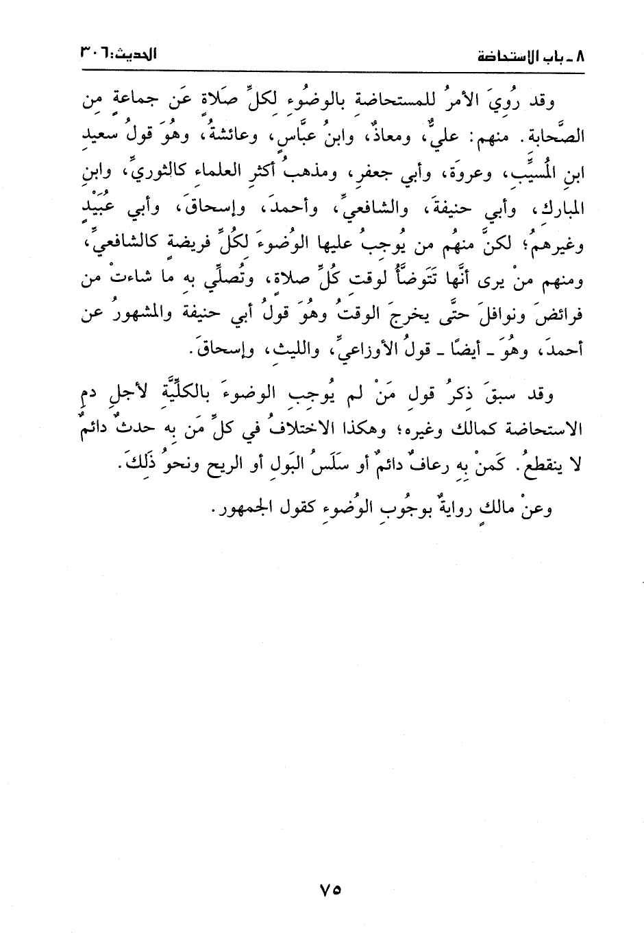 وقد سبق ذكر قول مِن لَم يوجب الوضوء بالكلية لأجل دم الاستحاضة، كمالك وغيره.