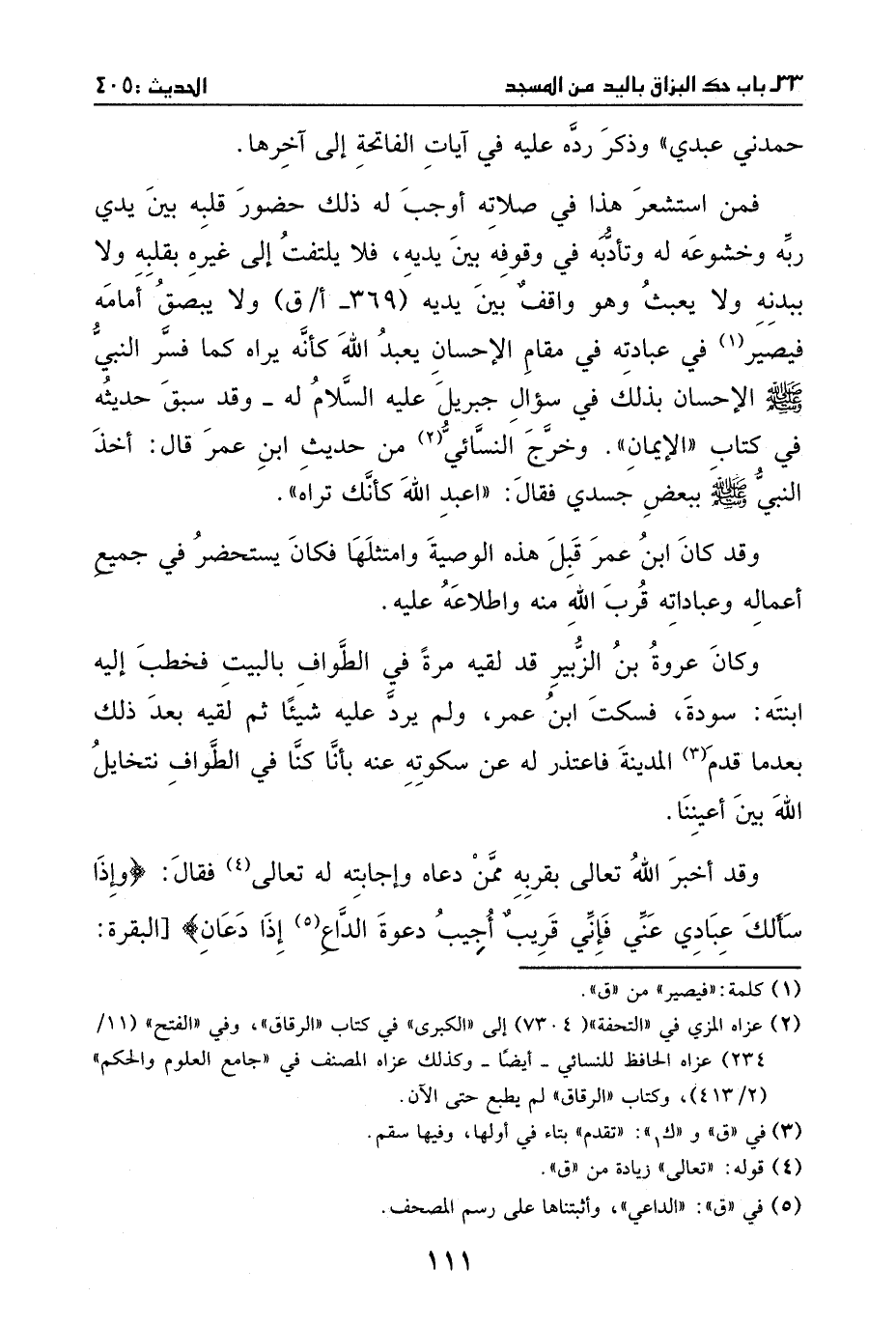 يراه، كما فسر النبي - صَلَّى اللهُ عَلَيْهِ وَسَلَّمَ - الإحسان بذلك في سؤال جبريل - عليه السلام - له، وقد سبق حديثه في ((كتاب: الإيمان)) .