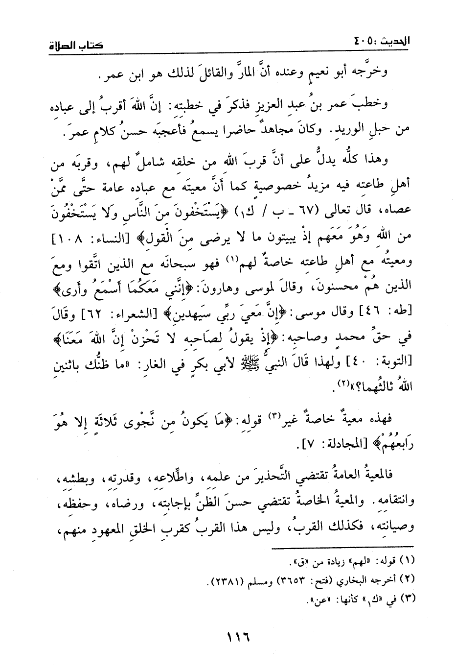 وهذا كله يدل على أن قرب الله من خلقه شامل لهم، وقربه من أهل طاعته فيه مزيد خصوصية، كما أن معيته مع عباده عامة حتى ممن عصاه؛ قالَ تعالى: {يَسْتَخْفُونَ مِنَ النَّاسِ وَلا يَسْتَخْفُونَ مِنَ اللَّهِ وَهُوَ مَعَهُمْ إِذْ يُبَيِّتُونَ مَا لا يَرْضَى مِنَ الْقَوْلِ} [النساء:108] ، ومعيته مع أهل طاعته خاصة لهم، فهوَ سبحانه مع الذين اتقوا ومع الذين هم محسنون. وقال لموسى وهارون: {إِنَّنِي مَعَكُمَا أَسْمَعُ وَأَرَى} [طه:46] وقال موسى: {إِنَّ مَعِيَ رَبِّي سَيَهْدِينِ} [الشعراء:62] وقال في حق محمد وصاحبه