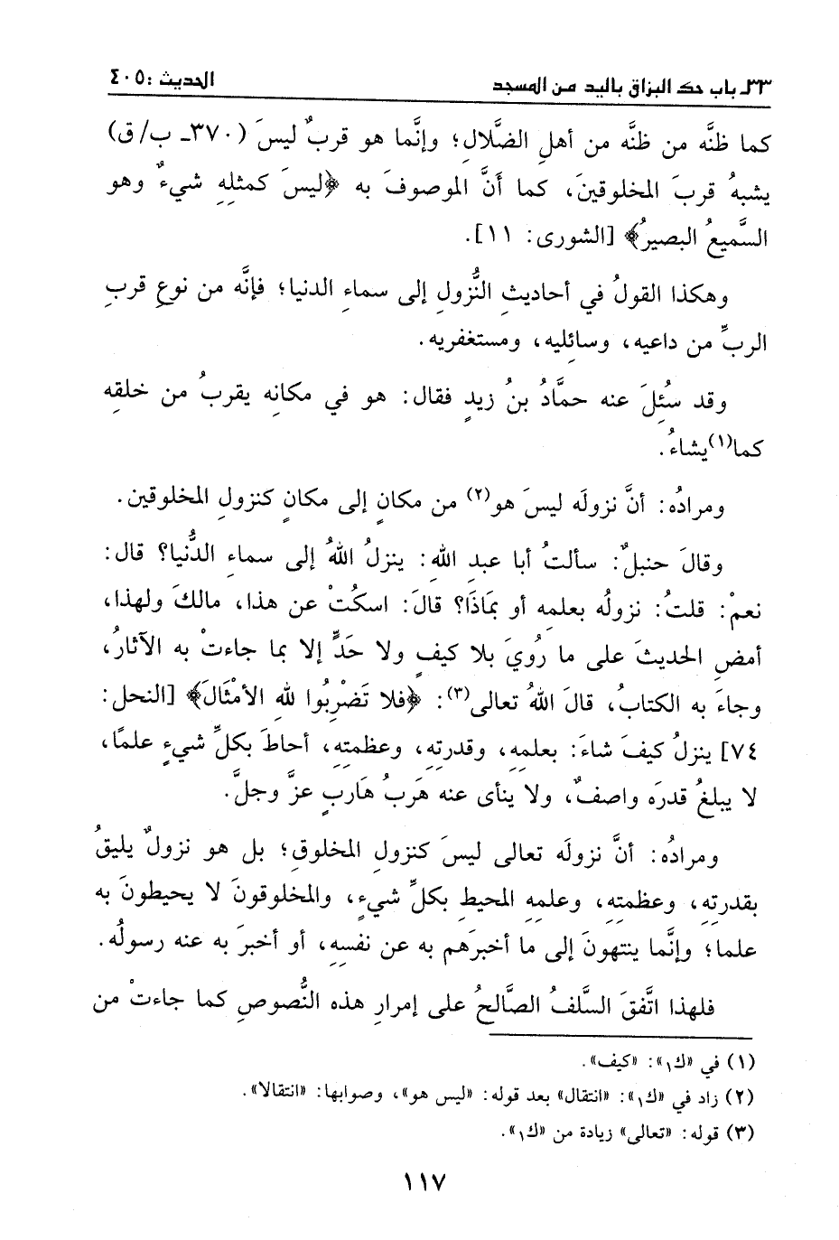 ومراده أن نزوله ليس هو انتقال من مكان إلى مكان كنزول المخلوقين.