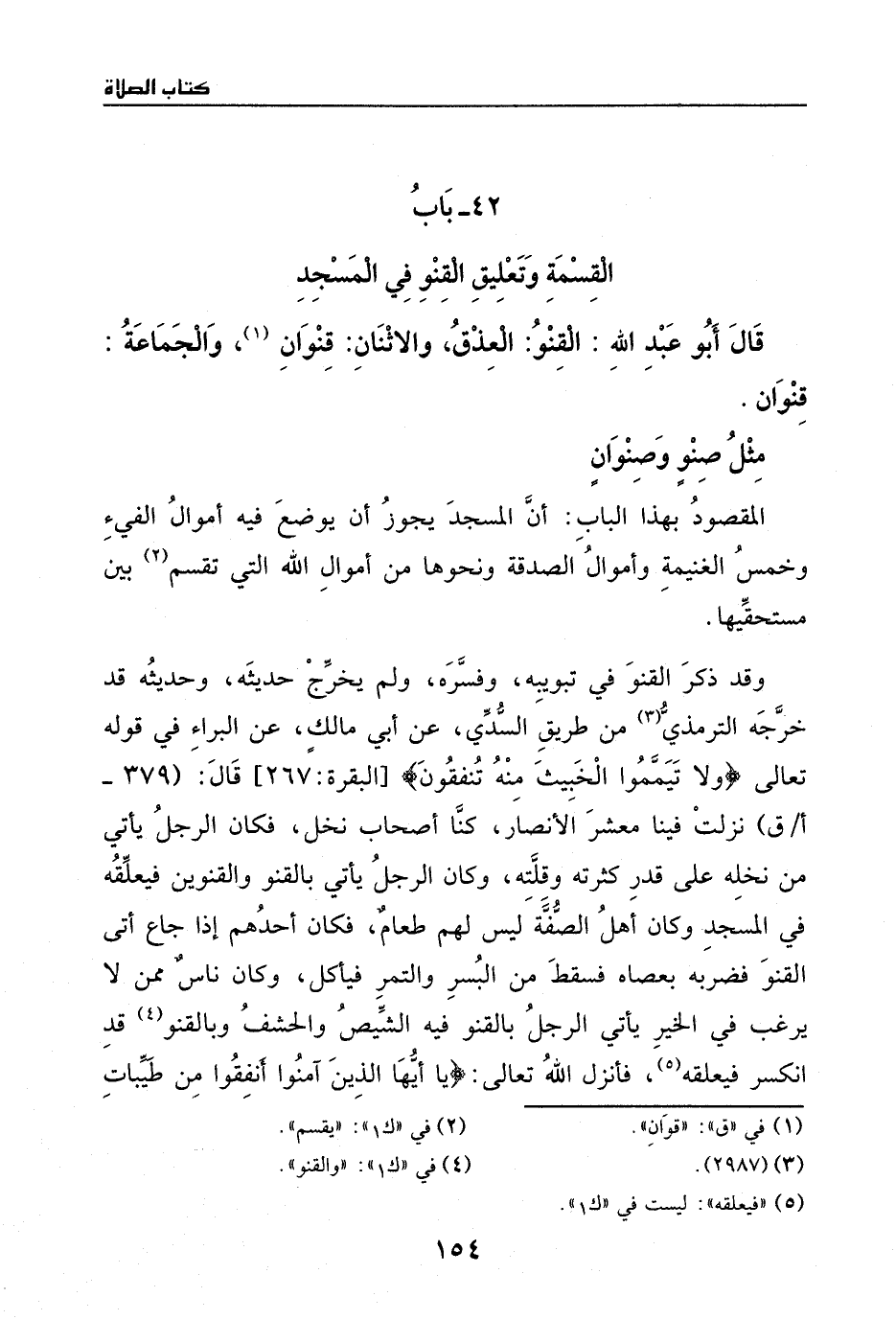وقد ذكر القنو في تبويبه وفسره ولم يخرج حديثه.