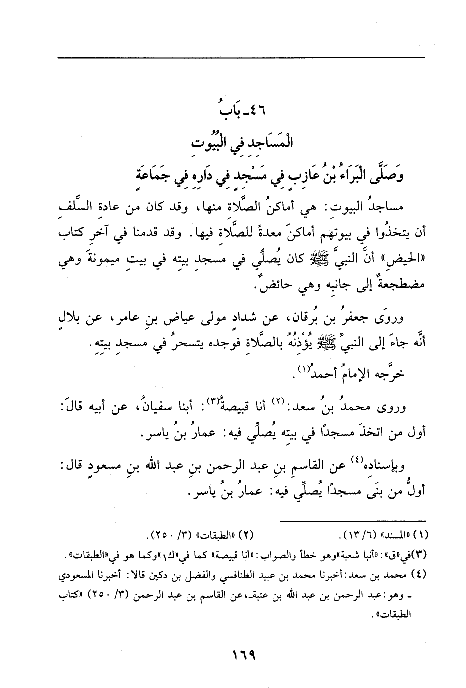 وروى محمد بن سعد: ابنا قبيصة: ابنا سفيان: عن أبيه، قال: أول من اتخذ مسجدا في بيته يصلي فيه عمار بن ياسر.