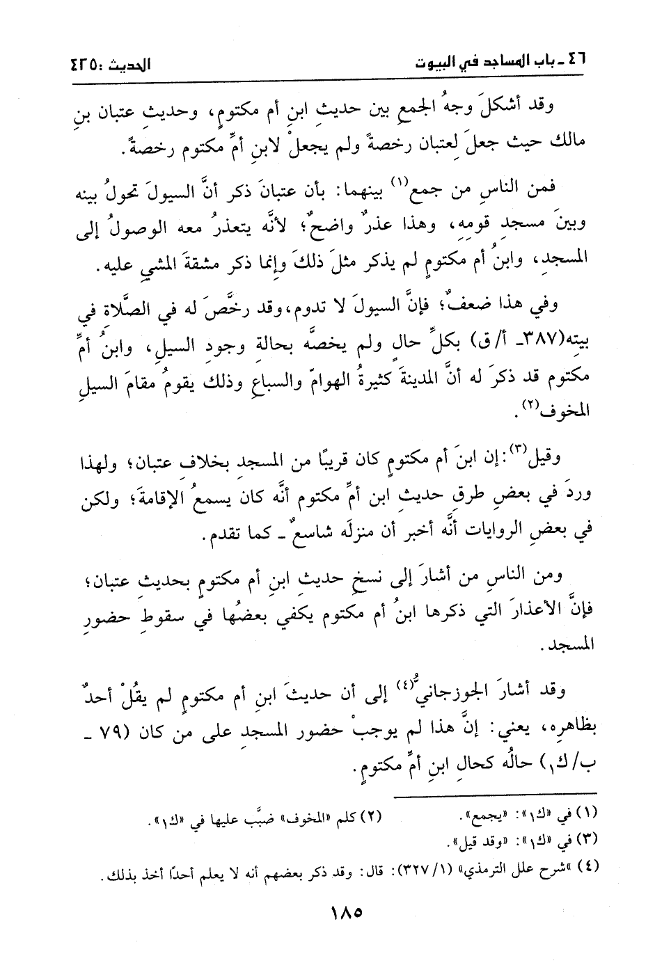 ومن الناس من أشار إلى نسخ حديث ابن أم مكتوم بحديث عتبان، فإن الأعذار التي ذكرها ابن أم مكتوم يكفي بعضها في سقوط حضور المسجد.