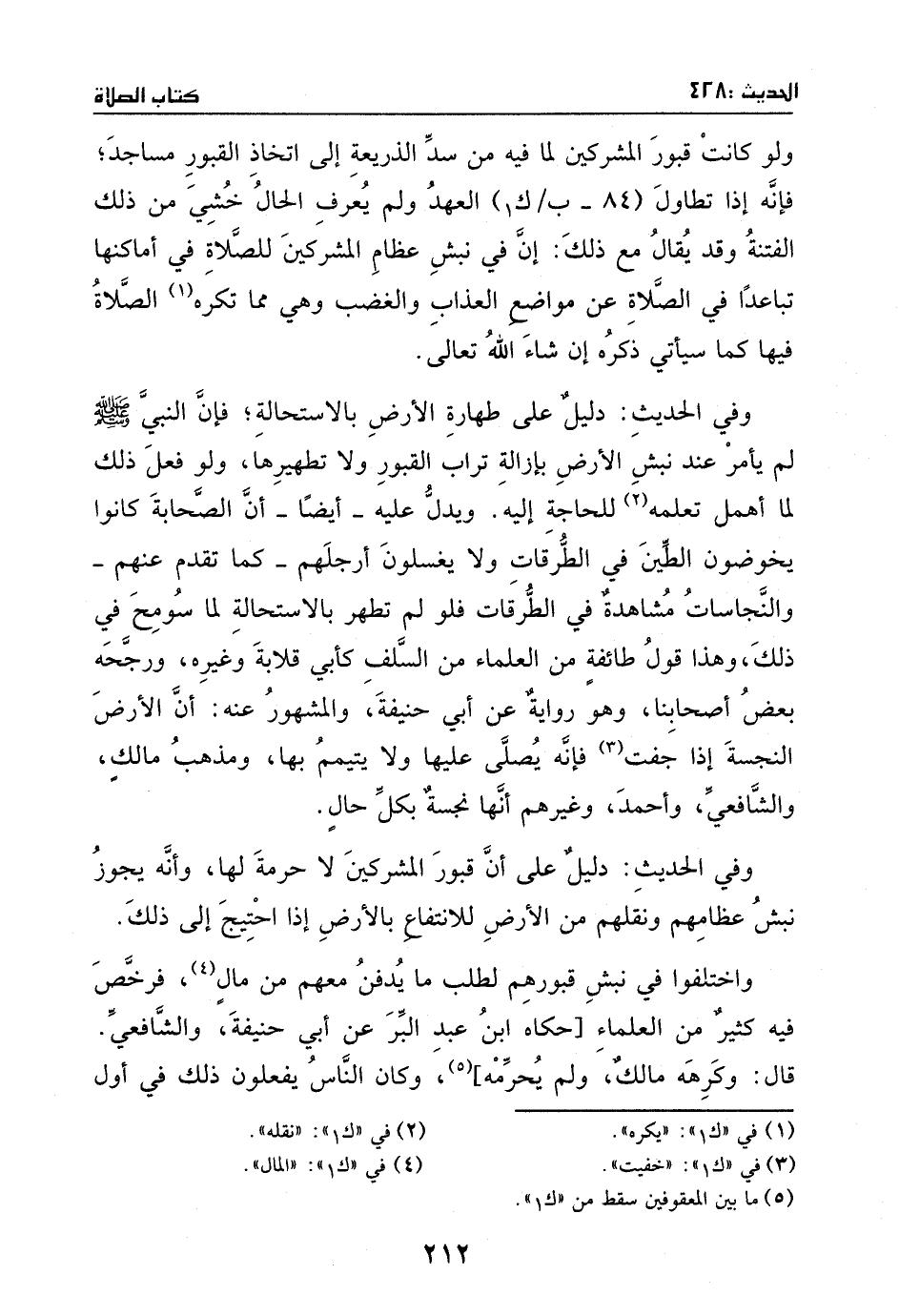 وفي الحديث: دليل على طهارة الأرض بالاستحالة؛ فإن النبي - صَلَّى اللهُ عَلَيْهِ وَسَلَّمَ - لم يأمر عند نبش الأرض بإزالة تراب القبور ولا تطهيرها، ولو فعل ذلك لما أهمل نقله؛ للحاجة إليه.