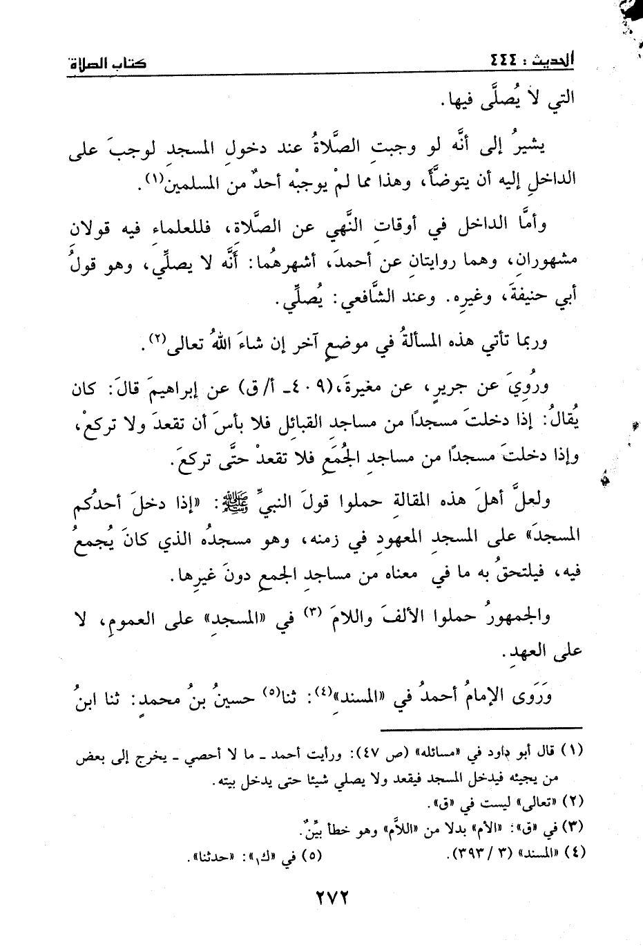 ولعل أهل العلم هذه المقالة حملوا قول النبي - صَلَّى اللهُ عَلَيْهِ وَسَلَّمَ -: ((إذا دخل أحدكم المسجد)) على المسجد المعهود في زمنه، وهو مسجده الذي كان يجمع فيه، فيلتحق به ما في معناه من مساجد الجمع دون غيرها.