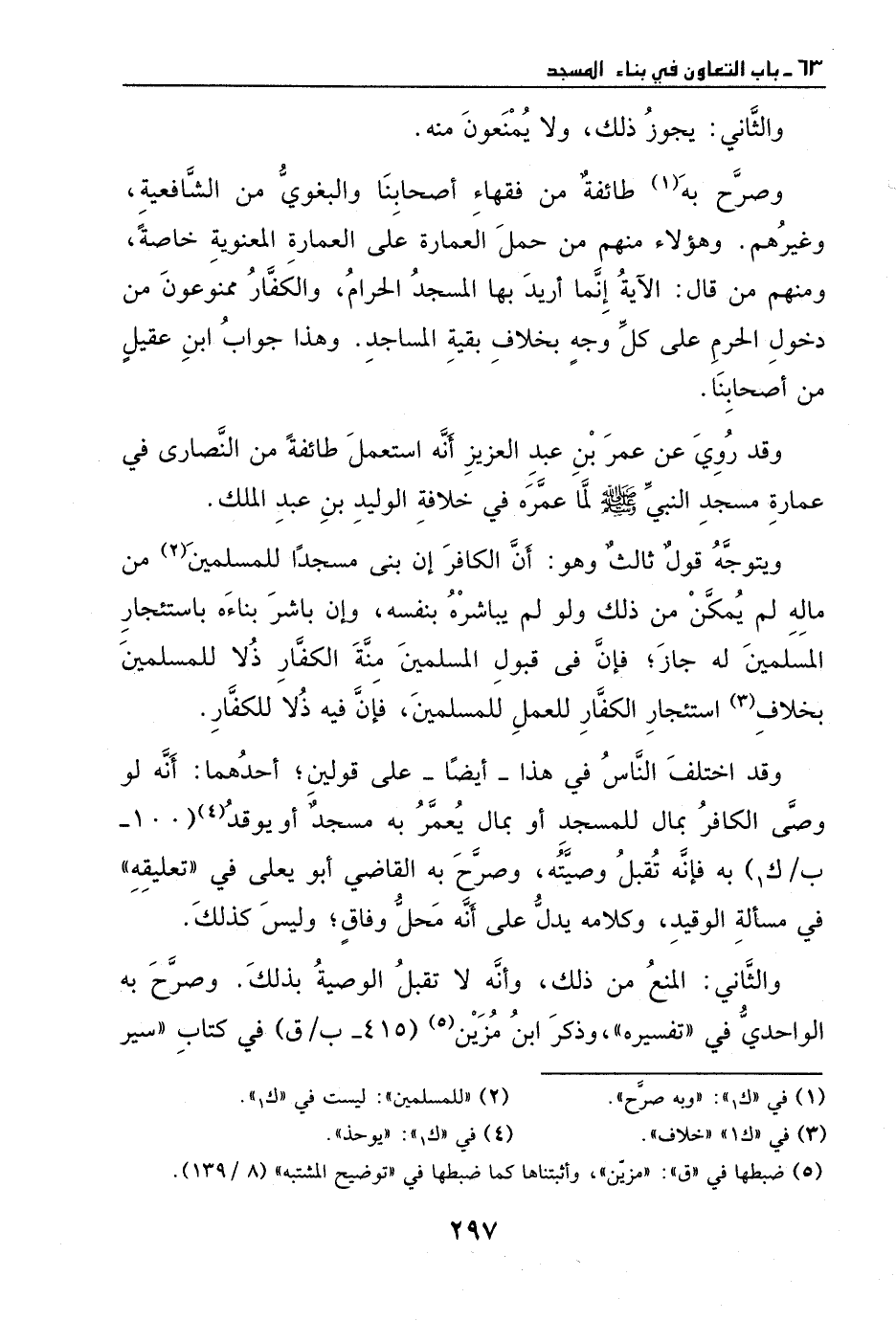 وهؤلاء؛ منهم من حمل العمارة على العمارة المعنوية خاصة، ومنهم من قال: الآية إنما أريد بها المسجد الحرام، والكفار ممنوعون من دخول الحرم على كل وجه، بخلاف بقية المساجد، وهذا جواب ابن عقيل من أصحابنا.