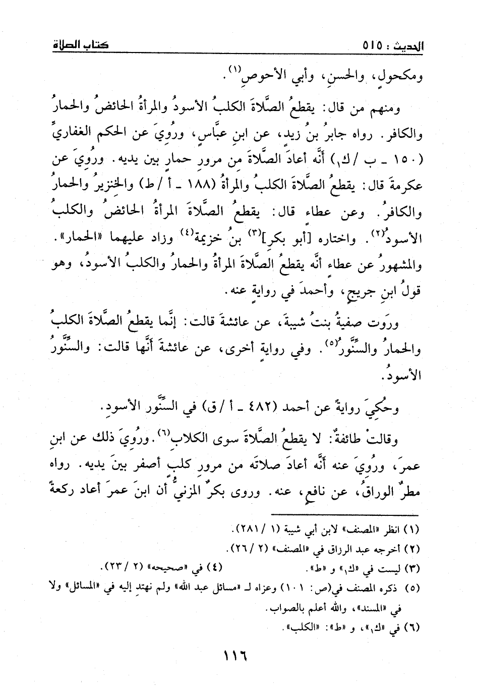 ومنهم من قال: يقطع الصلاة الكلب الأسود والمرأة الحائض والحمار والكافر، رواه جابر بن زيد، عن ابن عباس.