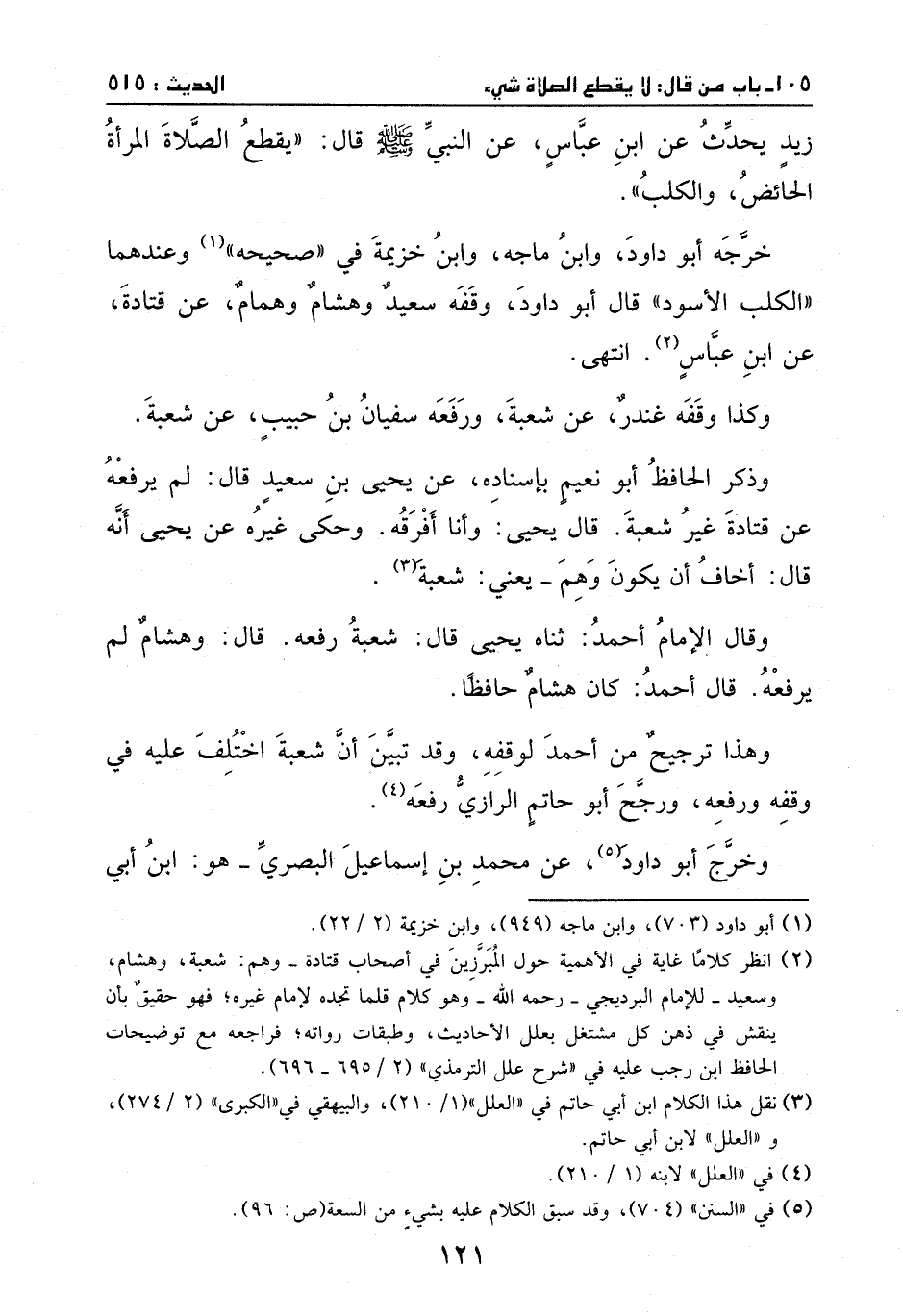زيد يحدث، عن ابن عباس، عن النبي - صَلَّى اللهُ عَلَيْهِ وَسَلَّمَ -: ((يقطع الصلاة المرأة الحائض والكلب)) .