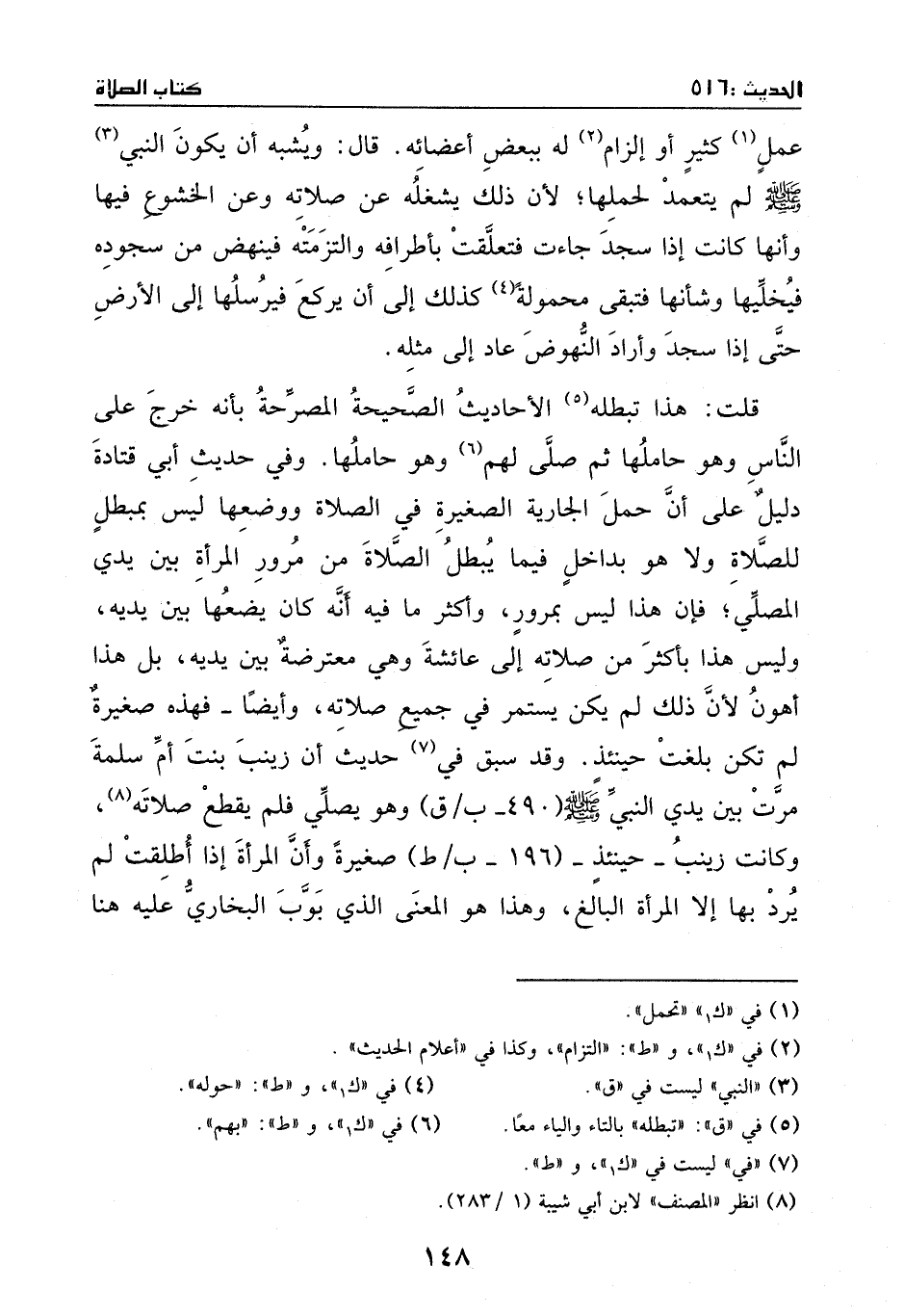 يصلي، فلم يقطع صلاته، وكانت زينب حينئذ صغيرة، وأن المرأة إذا أطلقت لم يرد بها إلا المرأة البالغ.