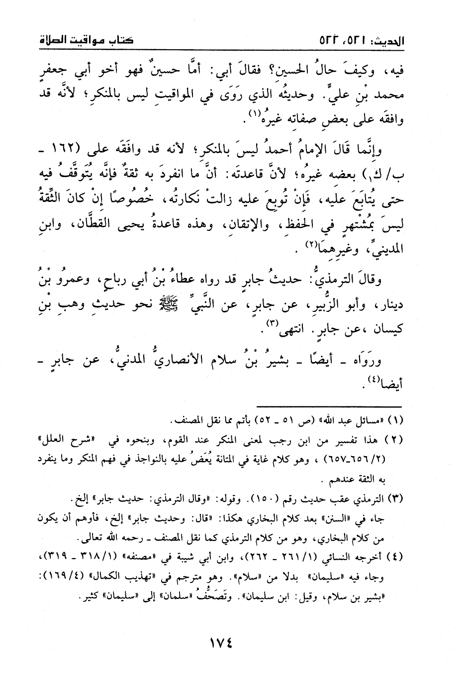 فيه، وكيف حال الحسين؟ فقال أبي: أماالحسين فهو أخو أبي جعفر محمد بن علي، وحديثه الذي روي في المواقيت ليس بالمنكر؛ لأنه قد وافقه على بعض صفاته غيره.