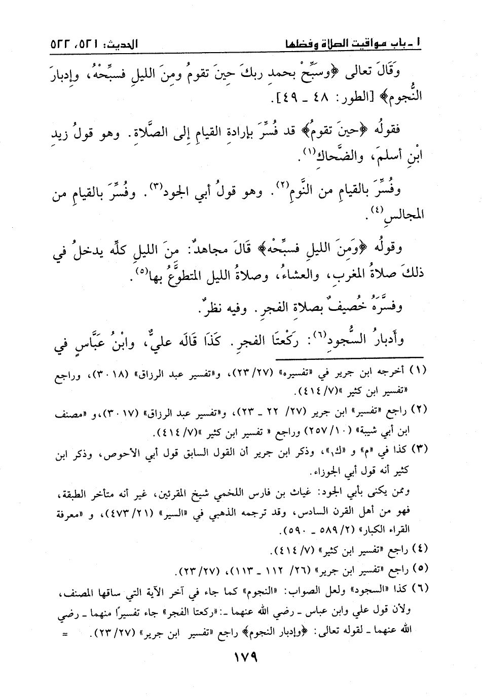 وقال تعالى: {وَسَبِّحْ بِحَمْدِ رَبِّكَ حِينَ تَقُومُ وَمِنْ اللَّيْلِ فَسَبِّحْهُ وَإِدْبَارَ النُّجُومِ} [الطور: 48، 49] .