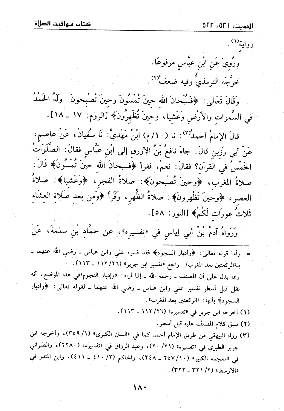 قال الإمام أحمد: نا ابن مهدي: نا سفيان، عن عاصم، عن أبي رزين، قال: جاء نافع بن الأزرق إلى ابن عباس، فقال،: الصلوات الخمس في القران؟ فقال: نعم، فقرأ: