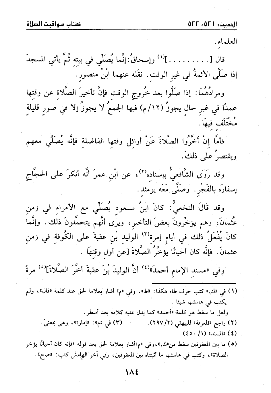 وقد قال النخعي: كان ابن مسعود يصلي مع الأمراء في زمن عثمان وهم يؤخرون بعض التأخير، ويرى أنهم يتحملون ذلك.
