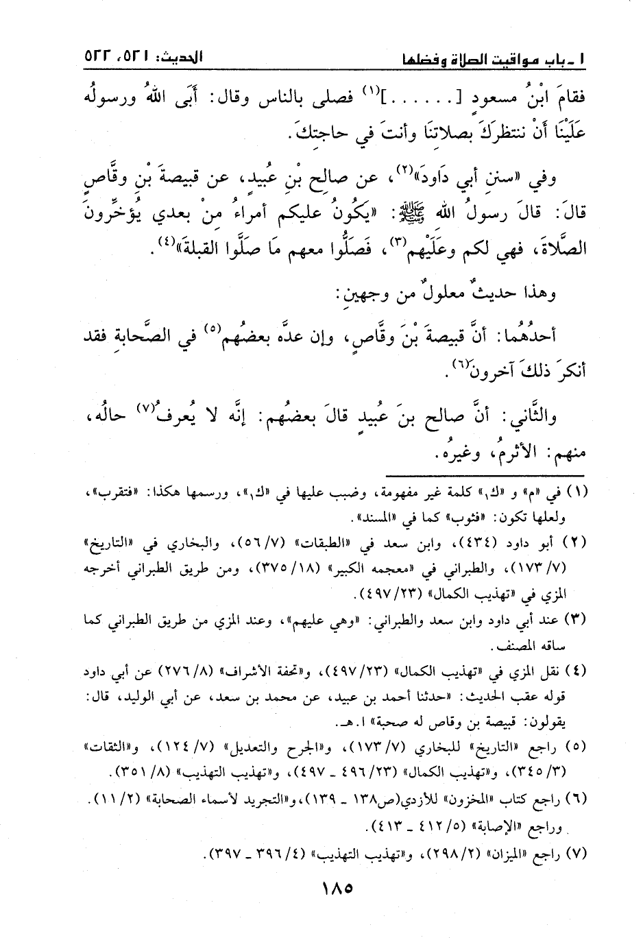 وفي "سنن أبي داود": عن صالح بن عبيد، عن قبيصة بن وقاص، قال: قال رسول الله - صَلَّى اللهُ عَلَيْهِ وَسَلَّمَ -: ((يكون عليكم أمراء من بعدي، يؤخرون الصلاة، فهي لكم وعليهم، فصلوا معهم ما صلوا القبلة)) .