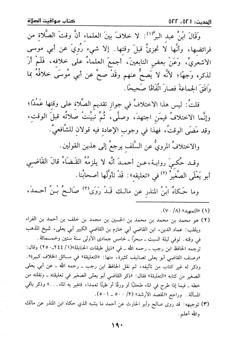 وقال ابن عبد البر: لا خلاف بين العلماء أن وقت الصلاة من فرائضها، وأنها لا تجزيء قبل وقتها، إلا شيء روي عن أبي موسى الأشعري وعن بعض التابعين، أجمع العلماء عن خلافه، فلم أر لذكره وجها؛ لأنه لا يصح عنهم، وقد صح عن أبي موسى خلافه بما وافق الجماعة، فصار اتفاقا صحيحاً.