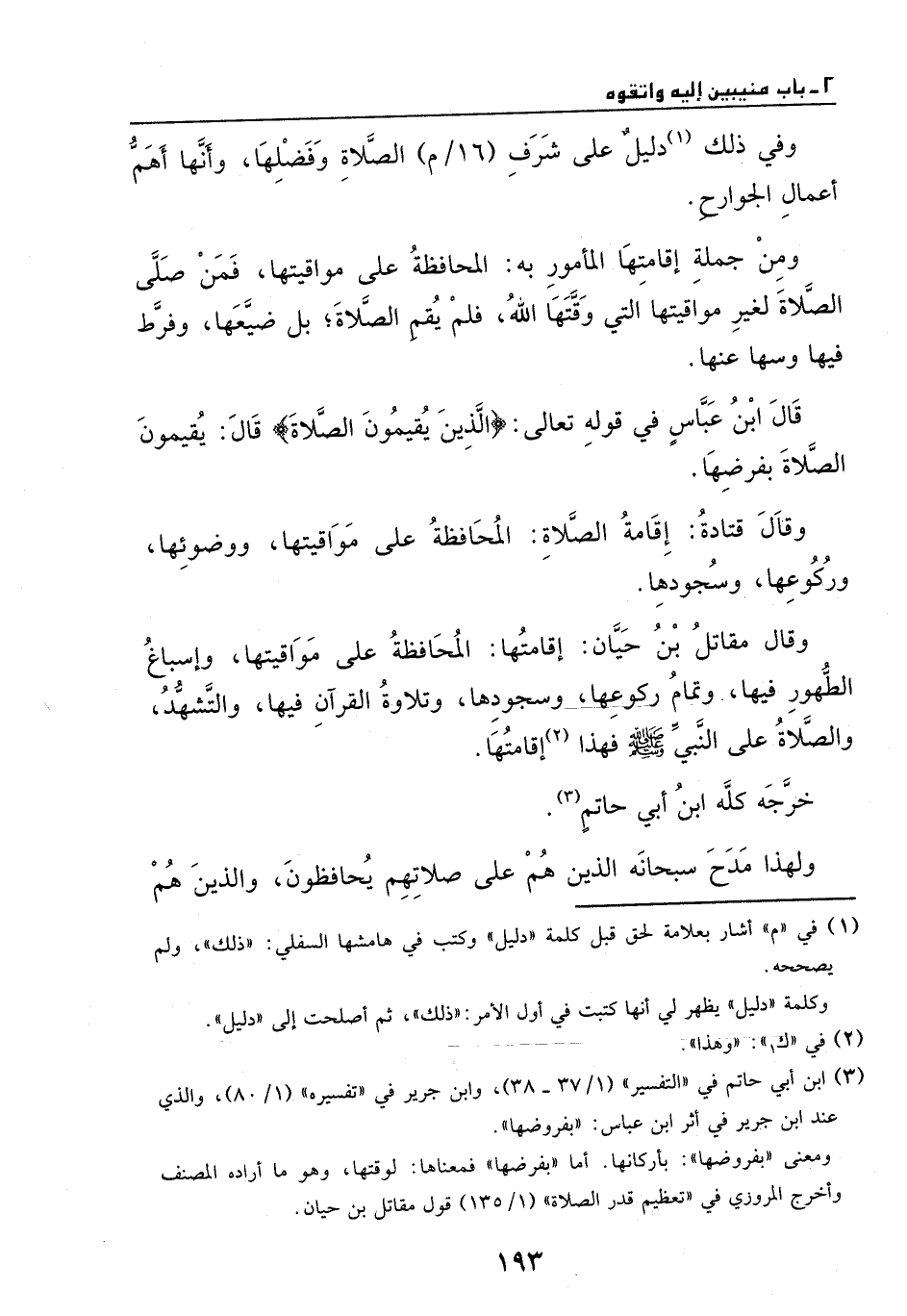 ولهذا مدح سبحانه الذين هم على صلاتهم يحافظون والذين هم
