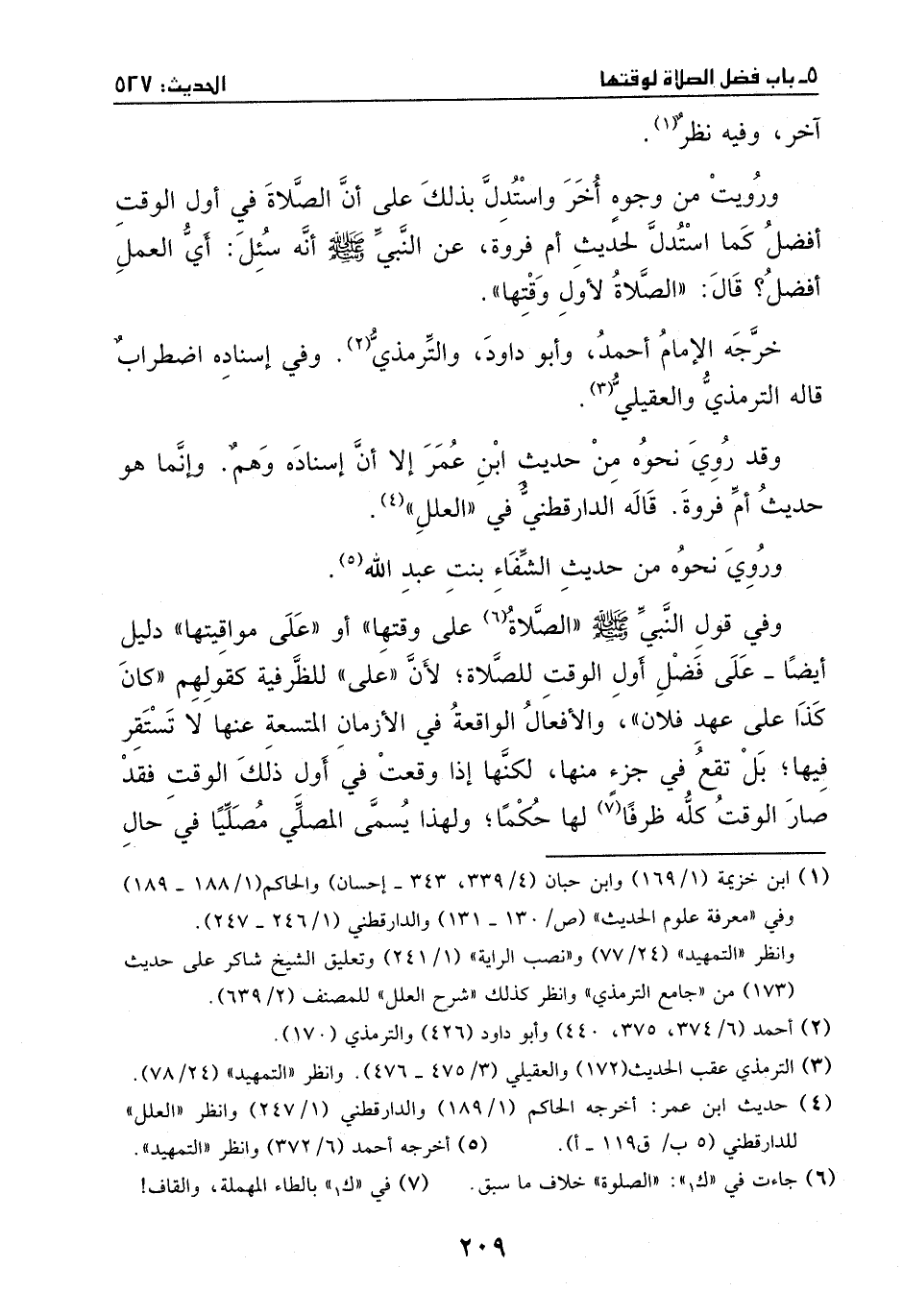 واستدل بذلك على أن الصلاة في أول الوقت أفضل، كما استدل لحديث ام فروة، عن النبي - صَلَّى اللهُ عَلَيْهِ وَسَلَّمَ -، أنه سئل: أي العمل أفضل؟ قال: ((الصلاة لأول وقتها)) .