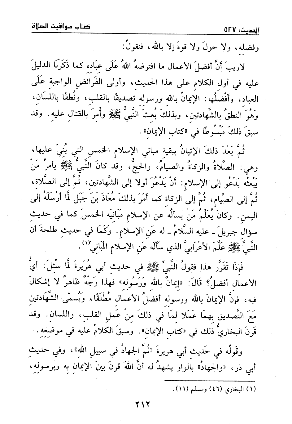 لا ريب أن أفضل الأعمال ما افترضه الله على عباده، كما ذكرنا الدليل عليه في أول الكلام على هذا الحديث، وأولى الفرائض الواجبة على العباد وأفضلها الإيمان بالله ورسوله، تصديقاً بالقلب، ونطقاً باللسان، وهو النطق بالشهادتين، وبذلك بعث النبي - صَلَّى اللهُ عَلَيْهِ وَسَلَّمَ -، وأمر بالقتال عليه، وقد سبق ذلك مبسوطا في " كتاب الإيمان".