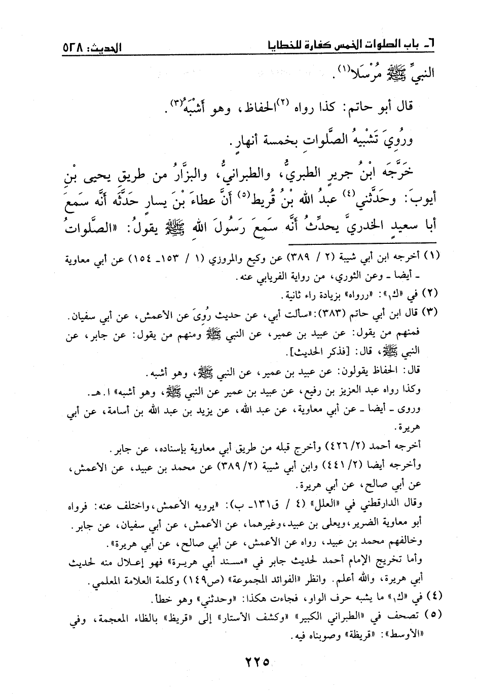 خرجه ابن جرير الطبري والطبراني والبزار من طريق يحيى بن أيوب: وحدثني عبد الله بن قريط، أن عطاء بن يسار حدثه، أنه سمع أبا سعيد الخدري يحدث، أنه سمع رسول الله - صَلَّى اللهُ عَلَيْهِ وَسَلَّمَ - يقول: ((الصلوات
