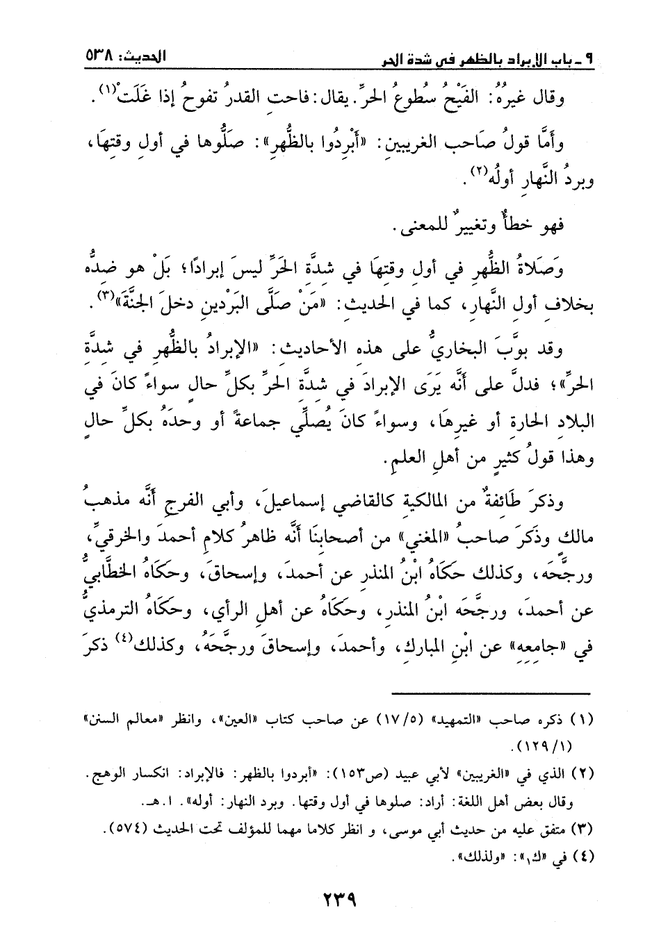 وأماقول صاحب " الغريبين": أبردوا بالظهر: صلوها في أول وقتها. وبرد النهار أوله.