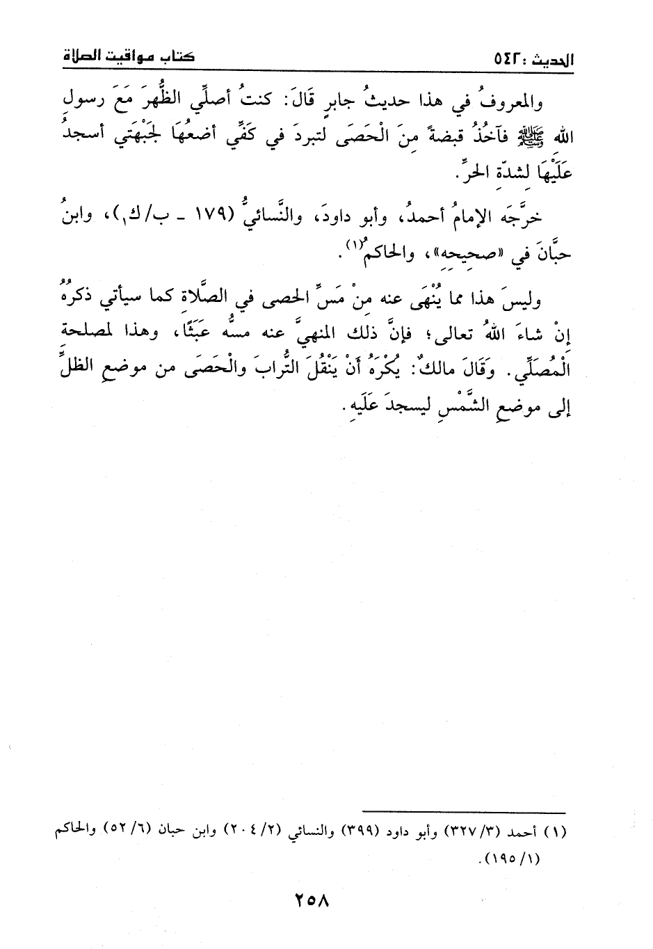 والمعروف في هذا حديث جابرٍ، قال: كنت أصلي الظهر مع رسول الله - صَلَّى اللهُ عَلَيْهِ وَسَلَّمَ -، فآخذ قبضة من الحصى لتبرد في كفي، أضعها لجبهتي، أسجد عليها؛ لشدة الحر.