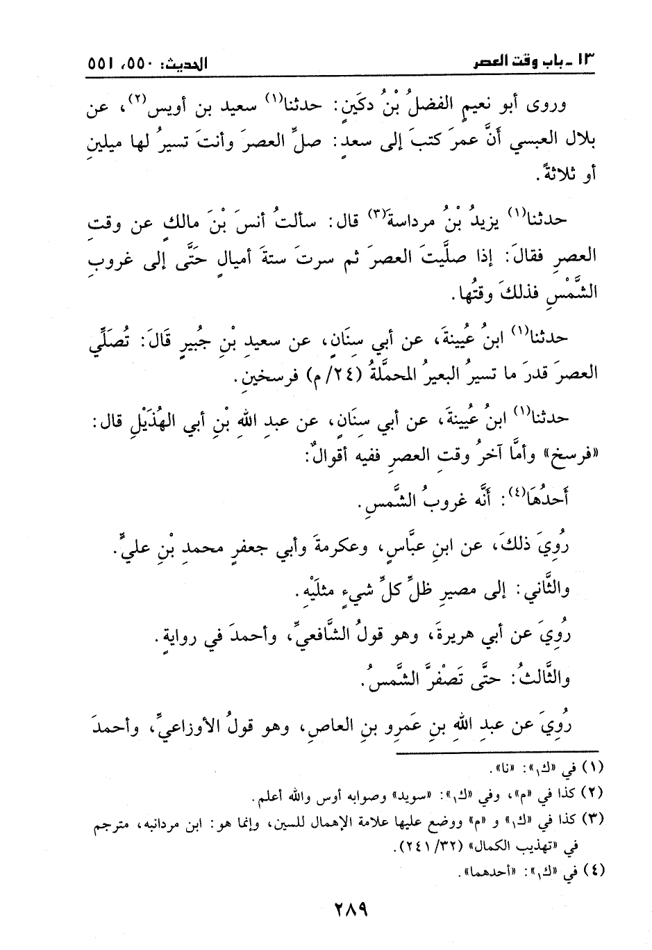 نا يزيد بن مردانبه، قال: سالت أنس بن مالك عن وقت العصر، فقال: إذا صليت العصر ثم سرت ستة اميال حتى إلى غروب الشمس فذلك وقتها.