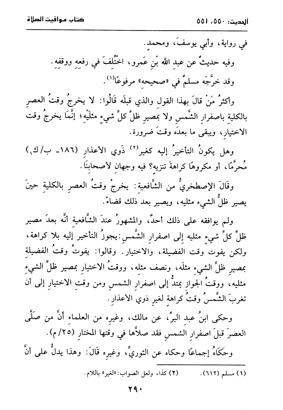 وحكى ابن عبد البر عن مالك وغيره من العلماء: ان من صلى العصر قبل اصفرار الشمس فقد صلاها في وقتها المختار، وحكاه اجماعاً، وحكاه عن الثوري وغيره.