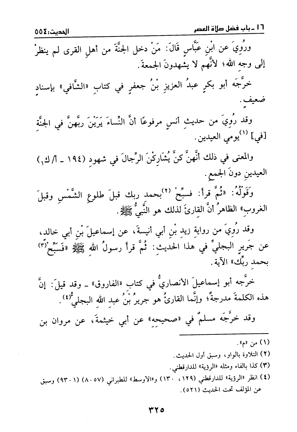 وقد روي من رواية زيد بن أبي أنيسة، عن إسماعيل بن أبي خالد، عن جرير البجلي في هذا الحديث: ثم قرأ رسول الله - صَلَّى اللهُ عَلَيْهِ وَسَلَّمَ - {وَسَبِّحْ بِحَمْدِ رَبِّكَ} - الآية.