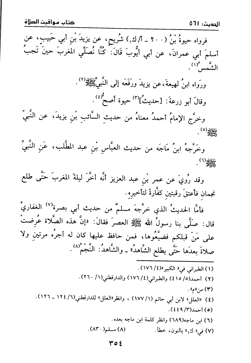 فأماالحديث الذي خرجه مسلم من حديث أبي بصرة الغفاري، قال: صلى بنا رسول الله - صَلَّى اللهُ عَلَيْهِ وَسَلَّمَ - العصر، فقال: ((إن هذه الصلاة عرضت على من قبلكم فضيعوها، فمن حافظ عليها كان له أجره مرتين، ولا صلاة بعدها حتى يطلع الشاهد)) ، والشاهد النجم.