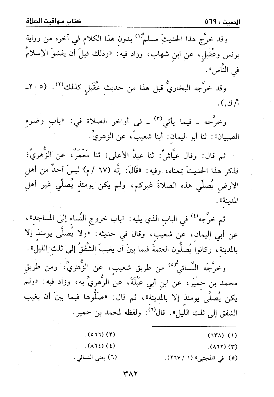 ومن طريق محمد بن حمير، عن ابن أبي عبلة، عن الزهري، به، وزاد فيه: (ولم يكن يصلي يومئذ إلا بالمدينة) . ثم قال: (صلوها فيما بين أن يغيب الشفق إلى ثلث الليل) .