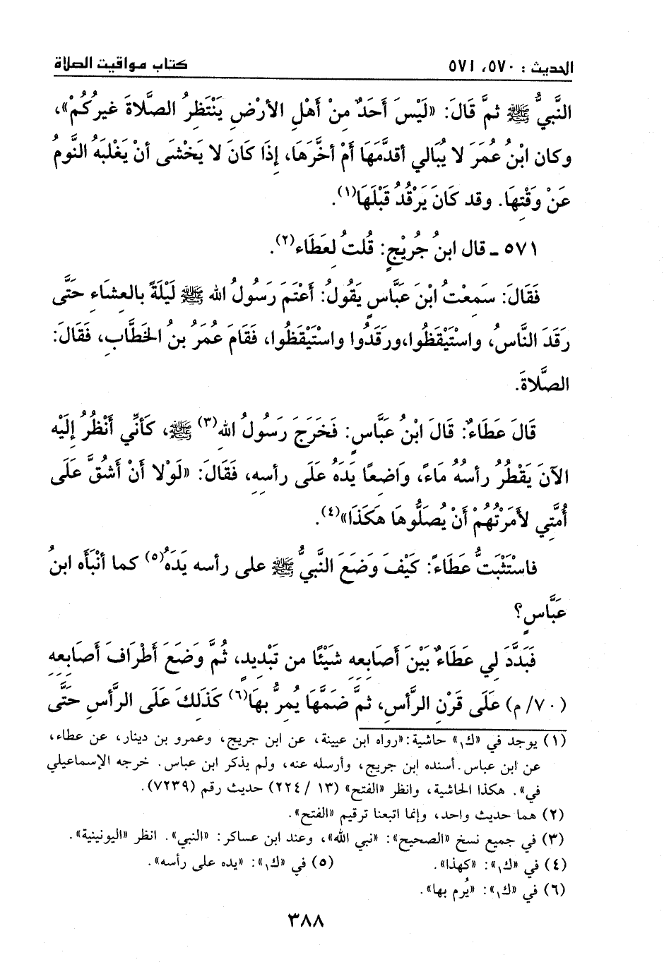 571 - قال ابن جريج: قلت لعطاء، فقال: سمعت ابن عباس يقول: أعتم رسول الله - صَلَّى اللهُ عَلَيْهِ وَسَلَّمَ - ليلة بالعشاء حتى رقد الناس، واستيقظوا، ورقدوا واستيقظوا، فقام عمر بن الخطاب، فقال: الصلاة.