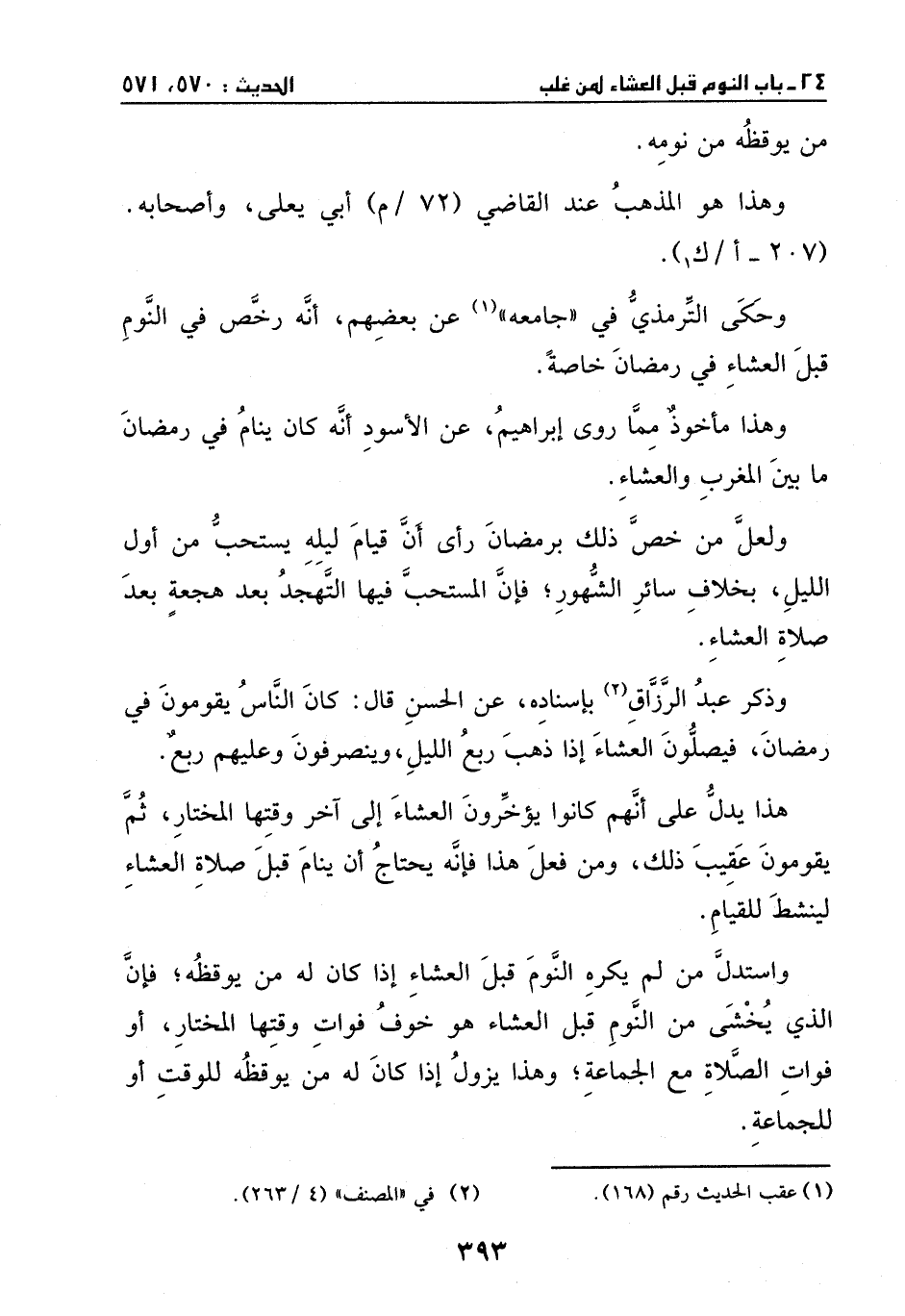 وحكى الترمذي في (جامعة) عن بعضهم، أنه رخص في النوم قبل العشاء في رمضان خاصة.