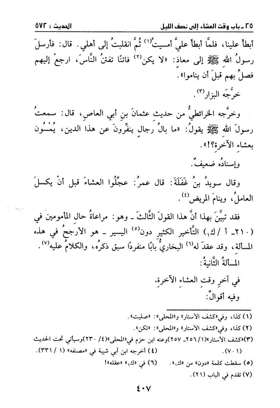 وخرجه الخرائطي من حديث عثمان بن أبي العاص، قال: سمعت رسول الله - صَلَّى اللهُ عَلَيْهِ وَسَلَّمَ - يقول: (ما بال رجال ينفرون عن هذا الدين، يمسون بعشاء الآخرة) .