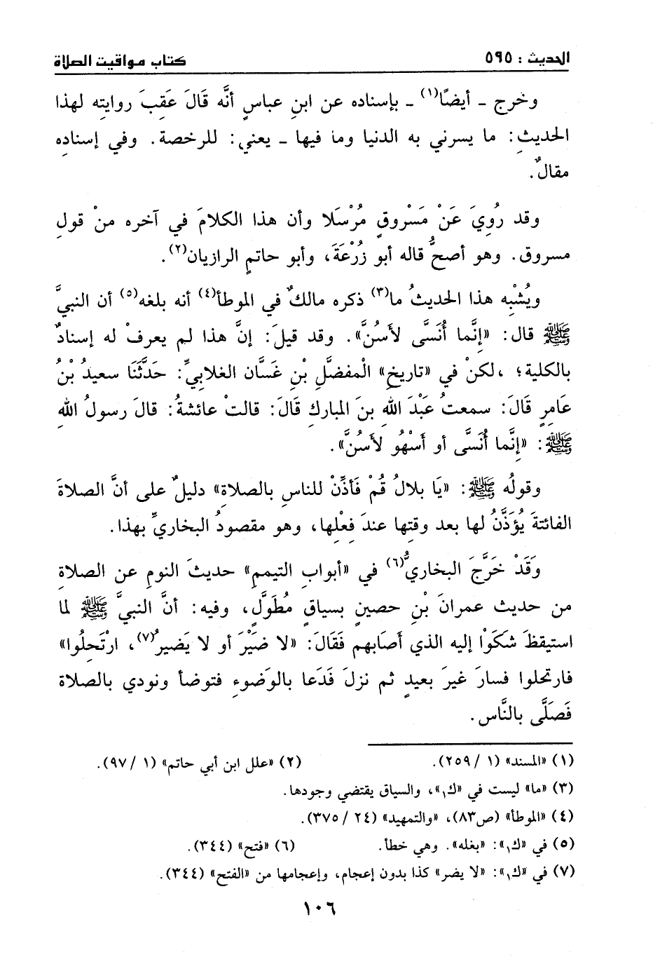 وقد خرج البخاري في (أبواب التميم) حديث النوم عن الصلاة من حديث عمران بن حصين، بسياق مطول، وفيه: أن النبي - صَلَّى اللهُ عَلَيْهِ وَسَلَّمَ - لما استيقظ شكوا إليه الذي أصابهم، فقال: (لا ضير – أو لا يضير -، ارتحلوا) ، فارتحلوا، فسار غير بعيد، ثم نزل فدعا بالوضوء، فتوضأ، ونودي بالصلاة فصلى بالناس.