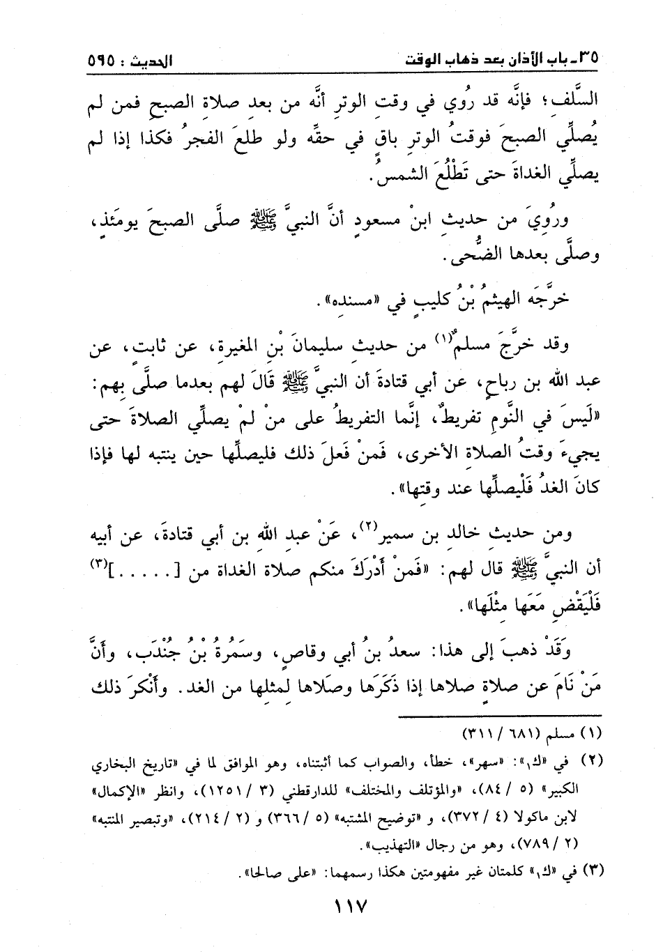 السلف؛ فإنه قد روي في وقت الوتر أنه من بعد صلاة الصبح، فمن لم يصل الصبح فوقت الوتر باقٍ في حقه، ولو طلع الفجر فكذا إذا لم يصل الغداة حتى تطلع الشمس.