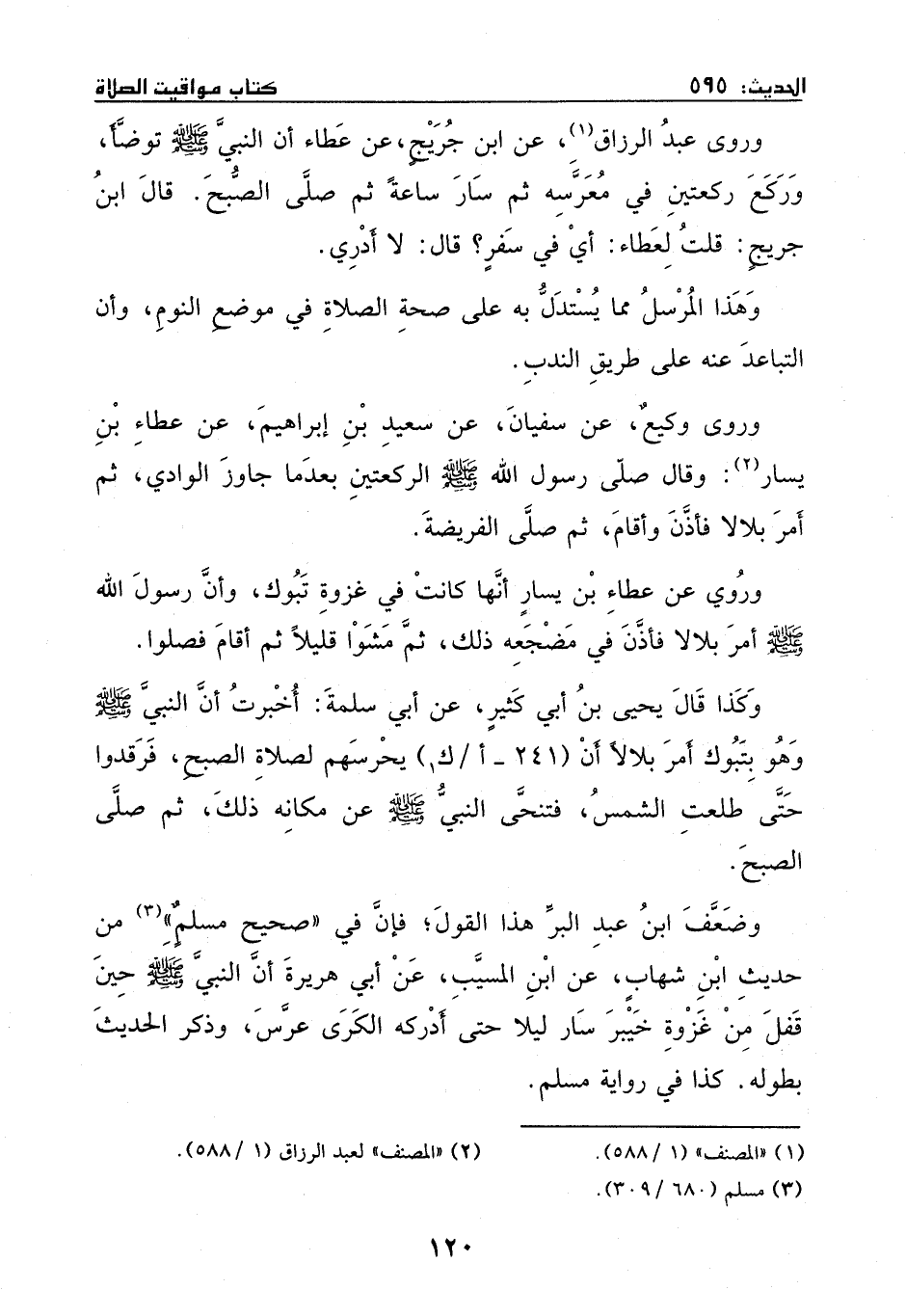 وضعف ابن عبد البر هذا القول؛ فإن في (صحيح مسلم) من حديث ابن شهاب، عن ابن المسيب، عن أبي هريرة، أن النبي - صَلَّى اللهُ عَلَيْهِ وَسَلَّمَ - حين قفل من غزوة خيبر، سار ليلاً حتى أدركه الكرى عرس – وذكر الحديث بطوله.