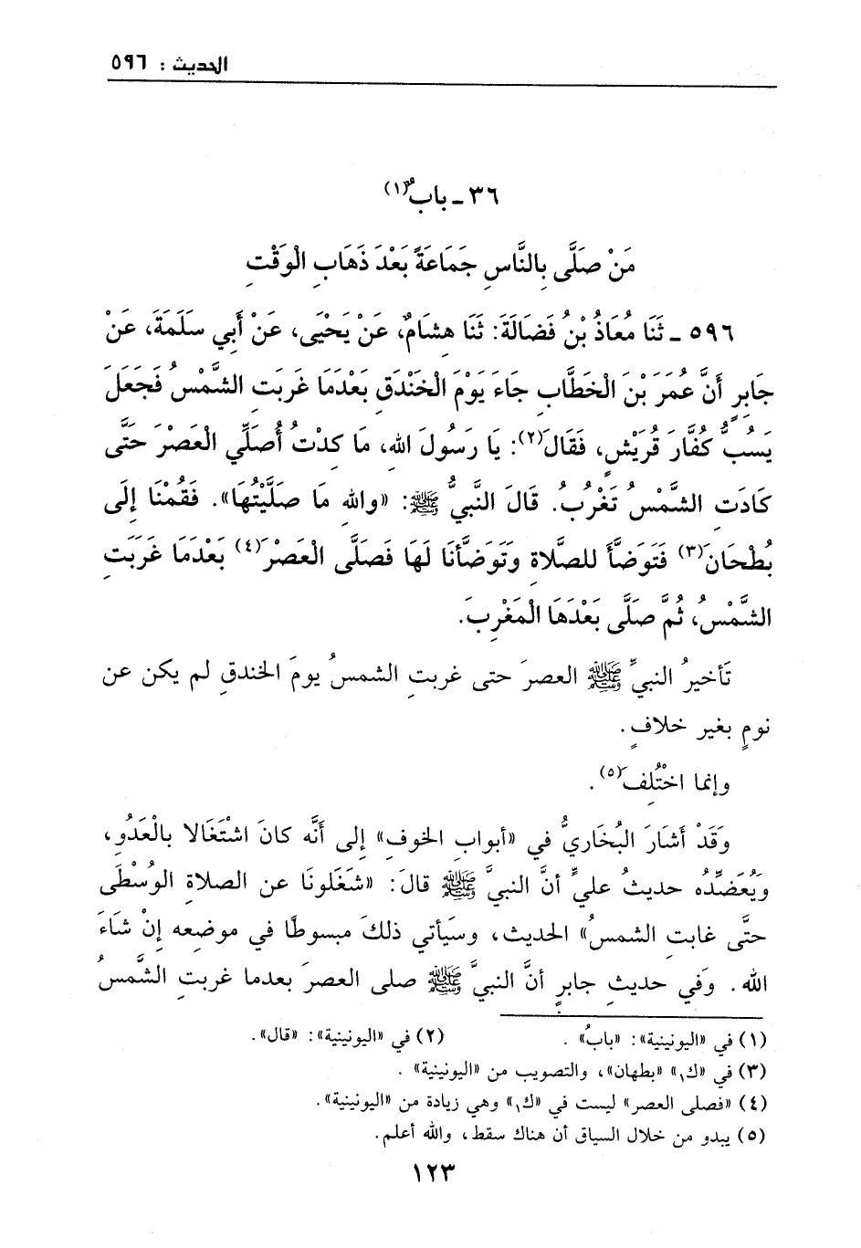 تأخير النبي - صَلَّى اللهُ عَلَيْهِ وَسَلَّمَ - العصر حتى غربت الشمس يوم الخندق لم يكن عن نوم بغير خلاف، وإنما اختلف.
