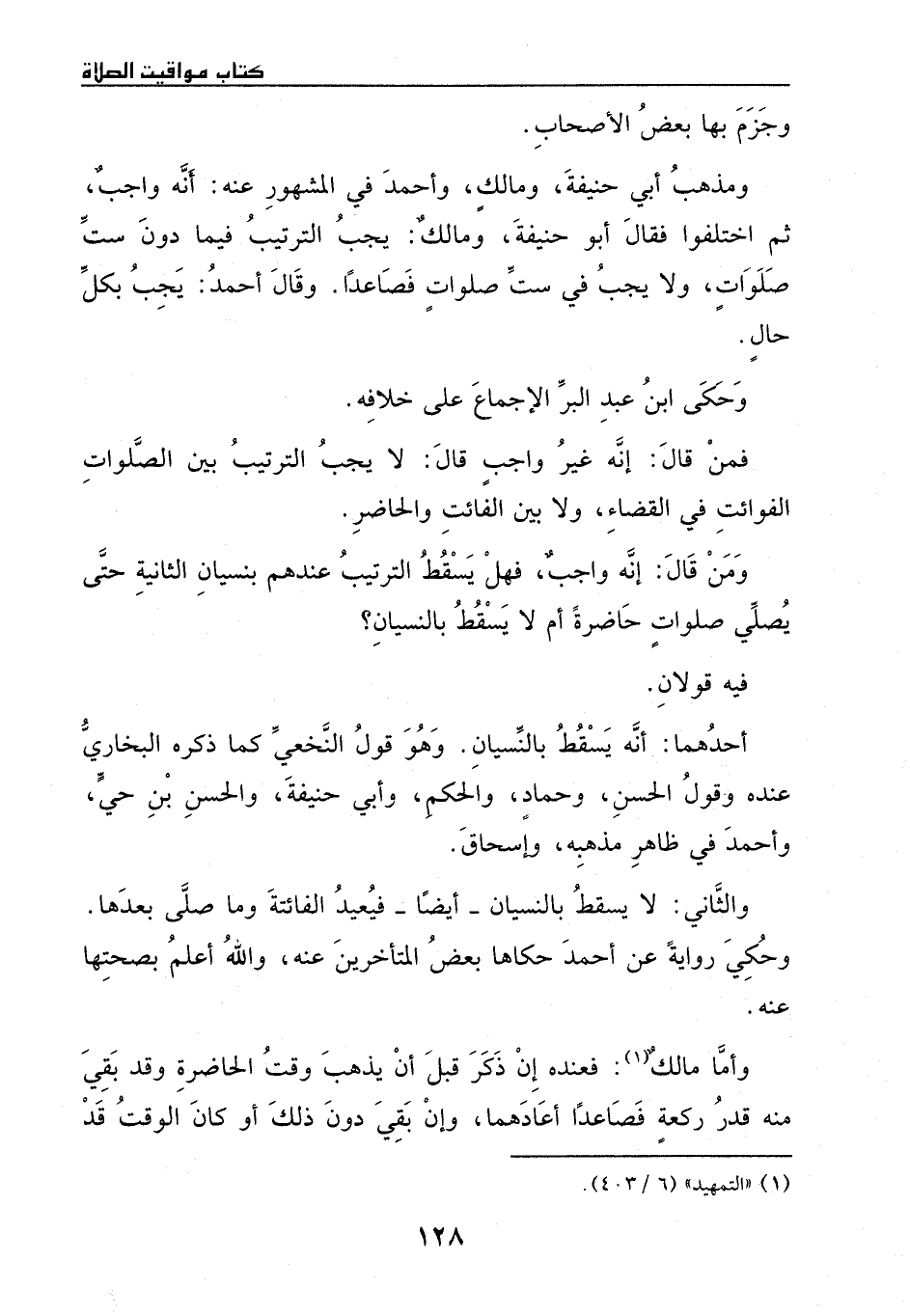 ومن قال: إنه واجب، فهل يسقط الترتيب عندهم بنسيان الثانية حتى يصلي صلوات حاضرة، أم لا يسقط بالنسيان؟ فيه قولان: