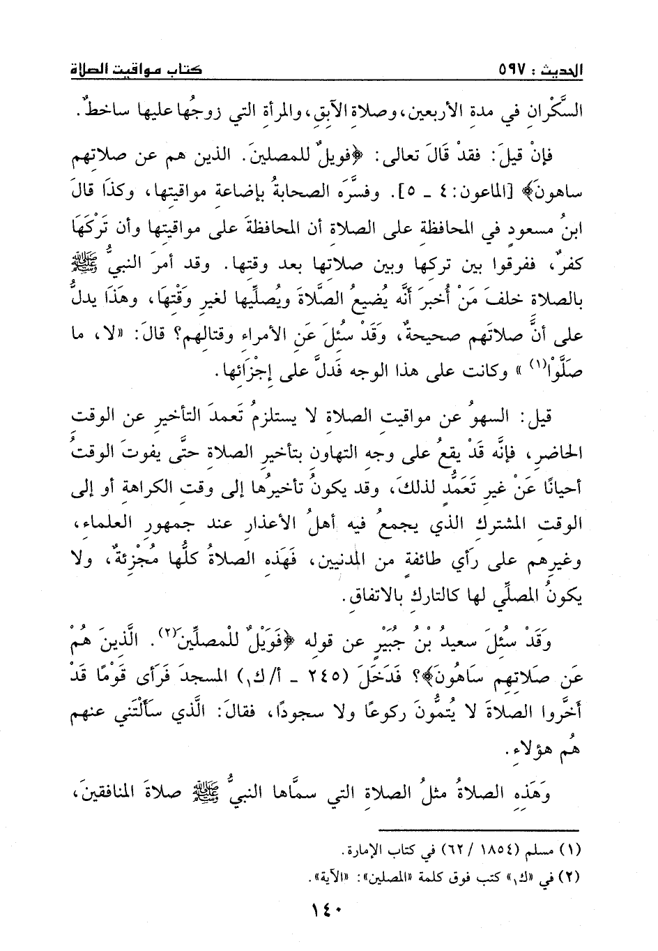 فإن قيل: فقد قال تعالى: {فويل للمصلين ... . ساهون} [الماعون: 4، 5] ، وفسره الصحابة بإضاعة مواقيتها.