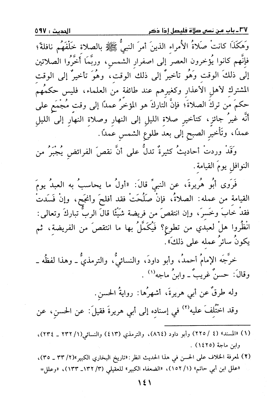 فروى أبو هريرة، عن النبي - صَلَّى اللهُ عَلَيْهِ وَسَلَّمَ -، قال: (أول ما يحاسب به العبد يوم القيامة من عمله الصلاة، فإن صلحت فقد أفلح وأنجح، وإن فسدت فقد خاب وخسر، وإن انتقص من فريضته شيئاً قال الرب تبارك وتعالى: انظروا، هل لعبدي من تطوع فيكمل بها ما انتقص من الفريضة؟ ثم يكون سائر عمله على ذلك) .