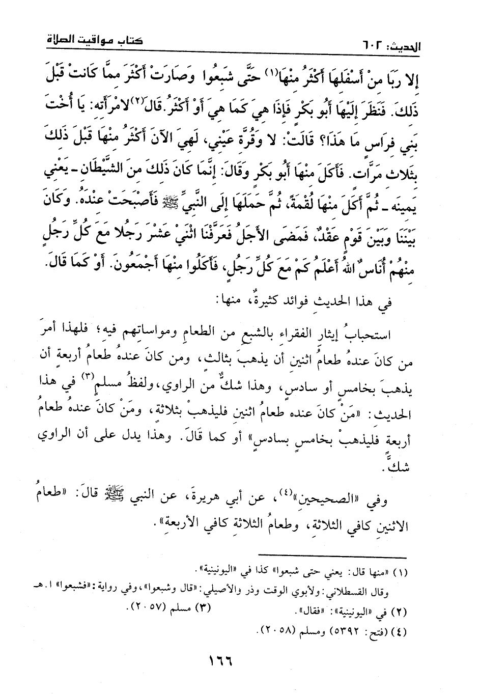 وفي (الصحيحين) ، عن أبي هريرة، عن النبي - صَلَّى اللهُ عَلَيْهِ وَسَلَّمَ -، قال: (طعام الاثنين كافي الثلاثة، وطعام الثلاثة كافي الأربعة) .