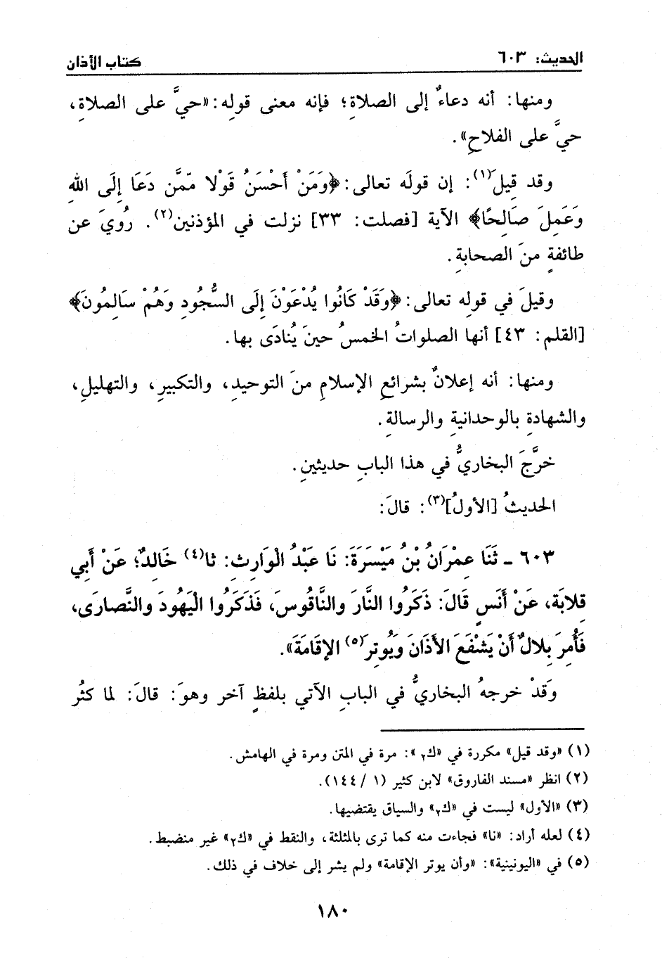 603 - ثنا عمران بن ميسرة: ثنا عبد الوارث: ثنا خالد، عن أبي قلابة، عن أنس، قال: ذكروا النار والناقوس، فذكروا اليهود والنصارى، فأمر بلال أن يشفع الأذان ويوتر الإقامة.